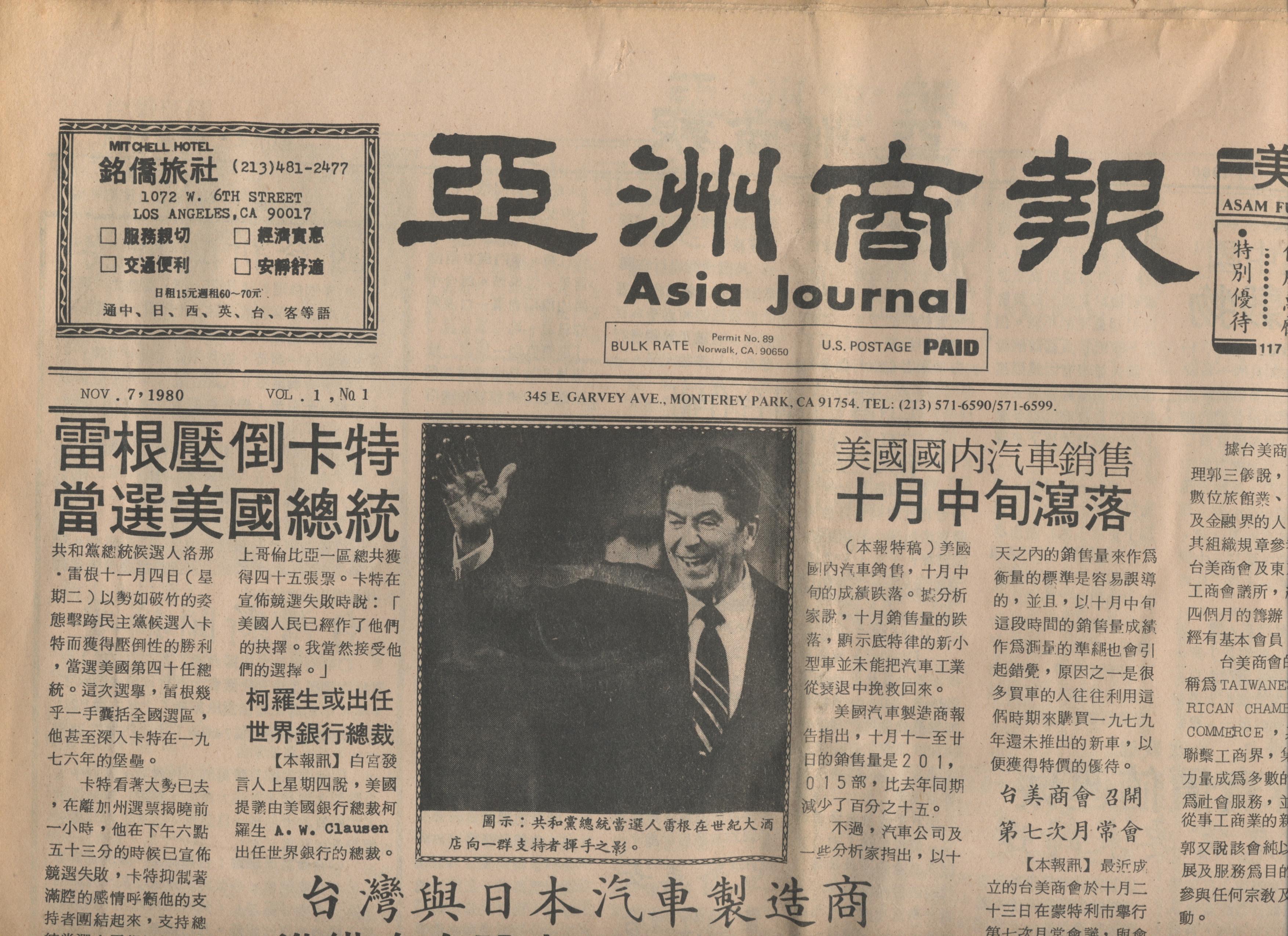 亞洲商報 Asia Journal July 28, 2015 Admin1 09. Newspapers 亞洲商報 Asia Journal Asia Journal: Collected #1, ( 11/07/1980) , 65, 68, 69 & 70 ( 2/26/1982 ) only 1980/11/7創刊,1983/10/21停刊。