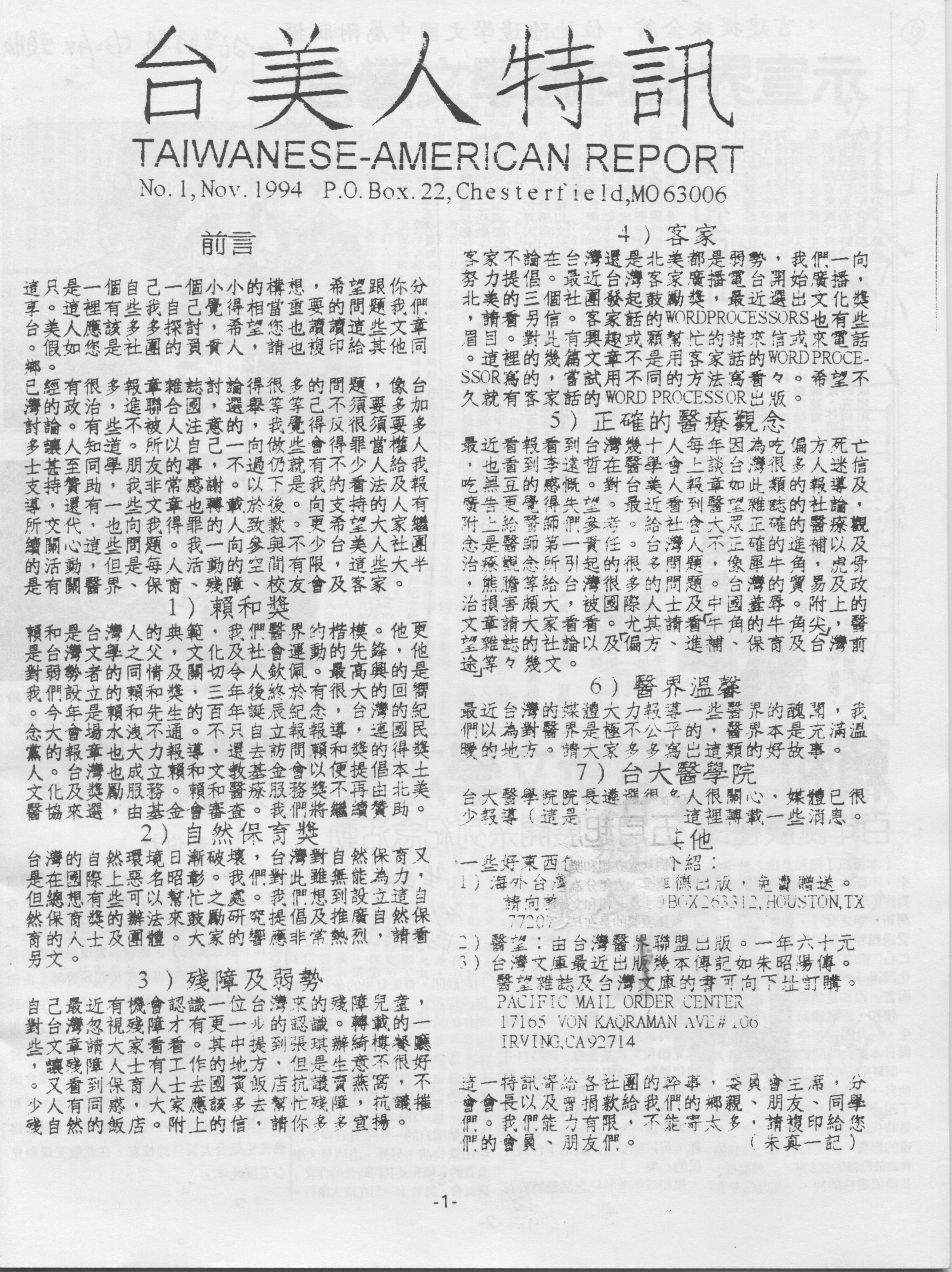 1317. 台美人特訊/NATPA St. Louis Chapter/1994