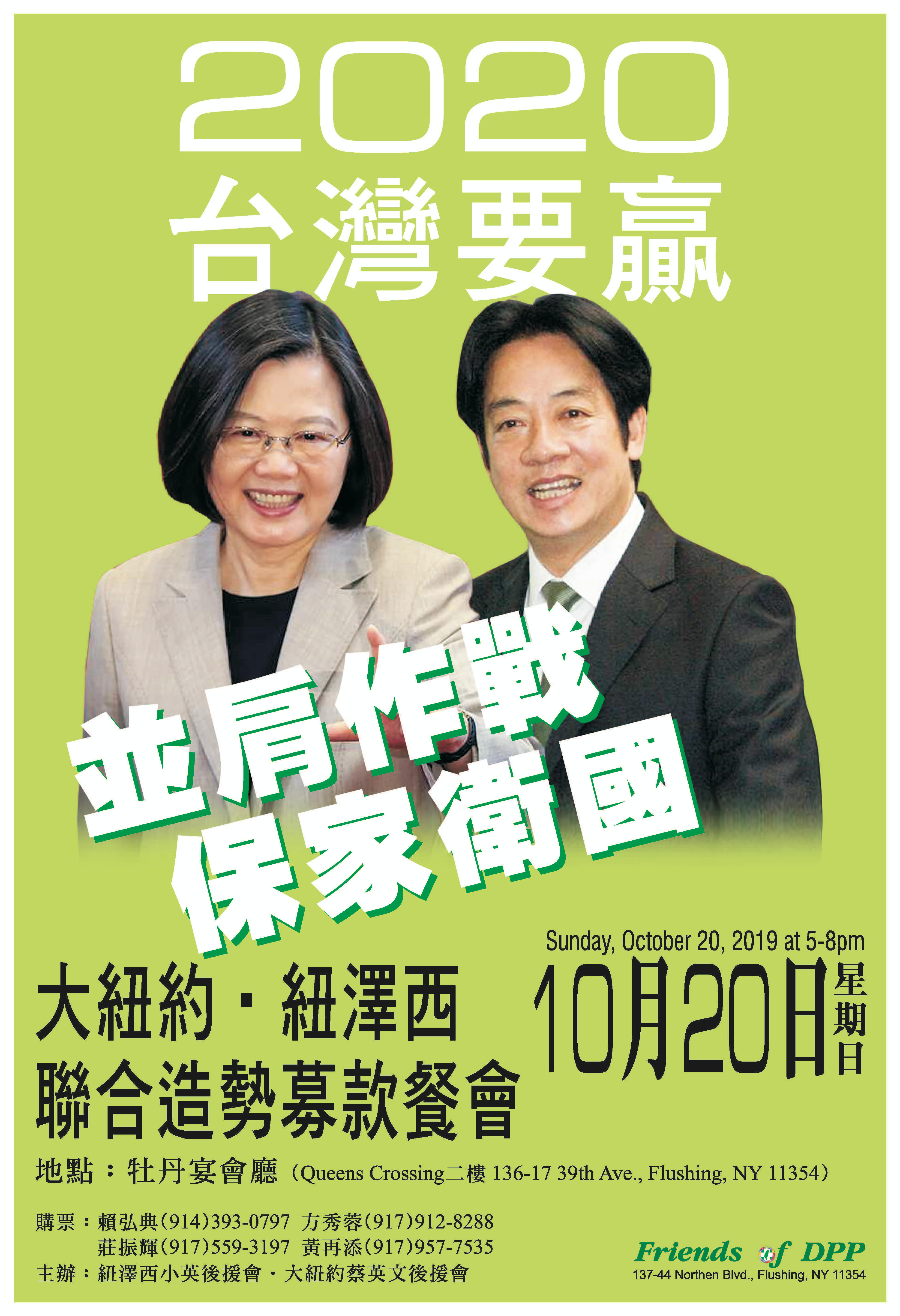 10/20/19 紐約紐澤西聯合造勢募款餐會邀請函