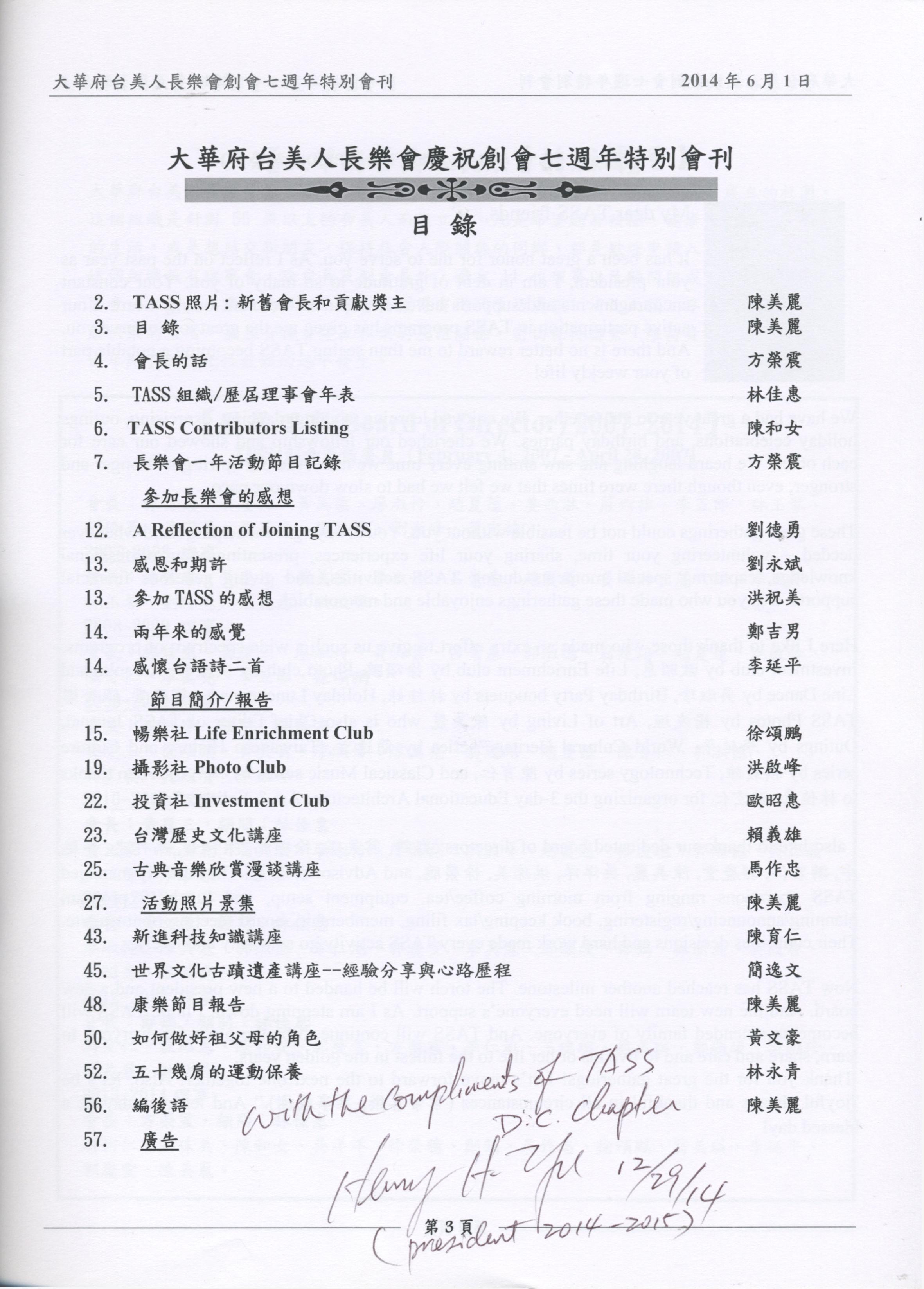 483. 大華府台美人長樂會慶祝創會七周年會刊/大華府台美人長樂會/2014/06/Magazines/雜誌