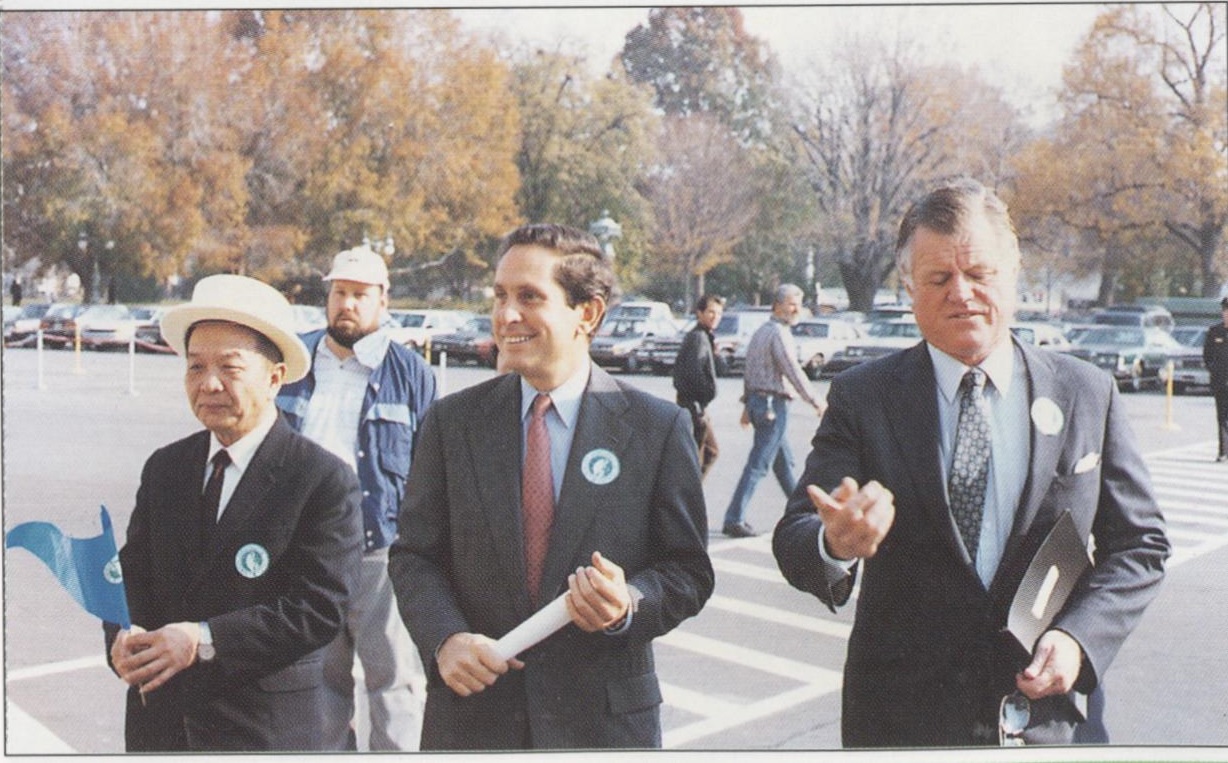 民主聖火長跑 - 0008「民主聖火長跑」。左起: 黃信介、美眾議員索拉茲、參議員甘迺迪