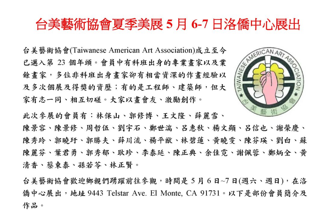 6. Taiwanese American Arts Association Art Exhibition 台美藝術協會藝術展