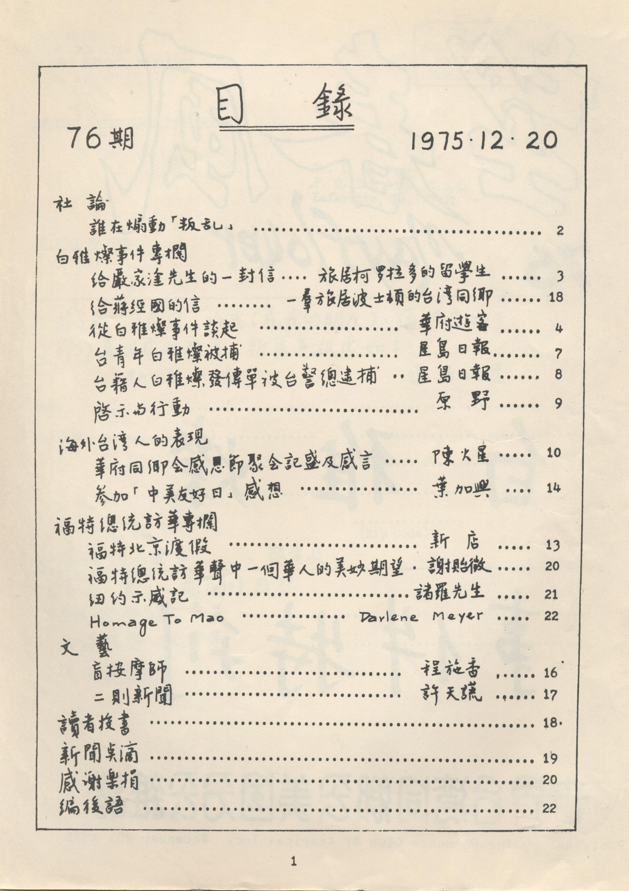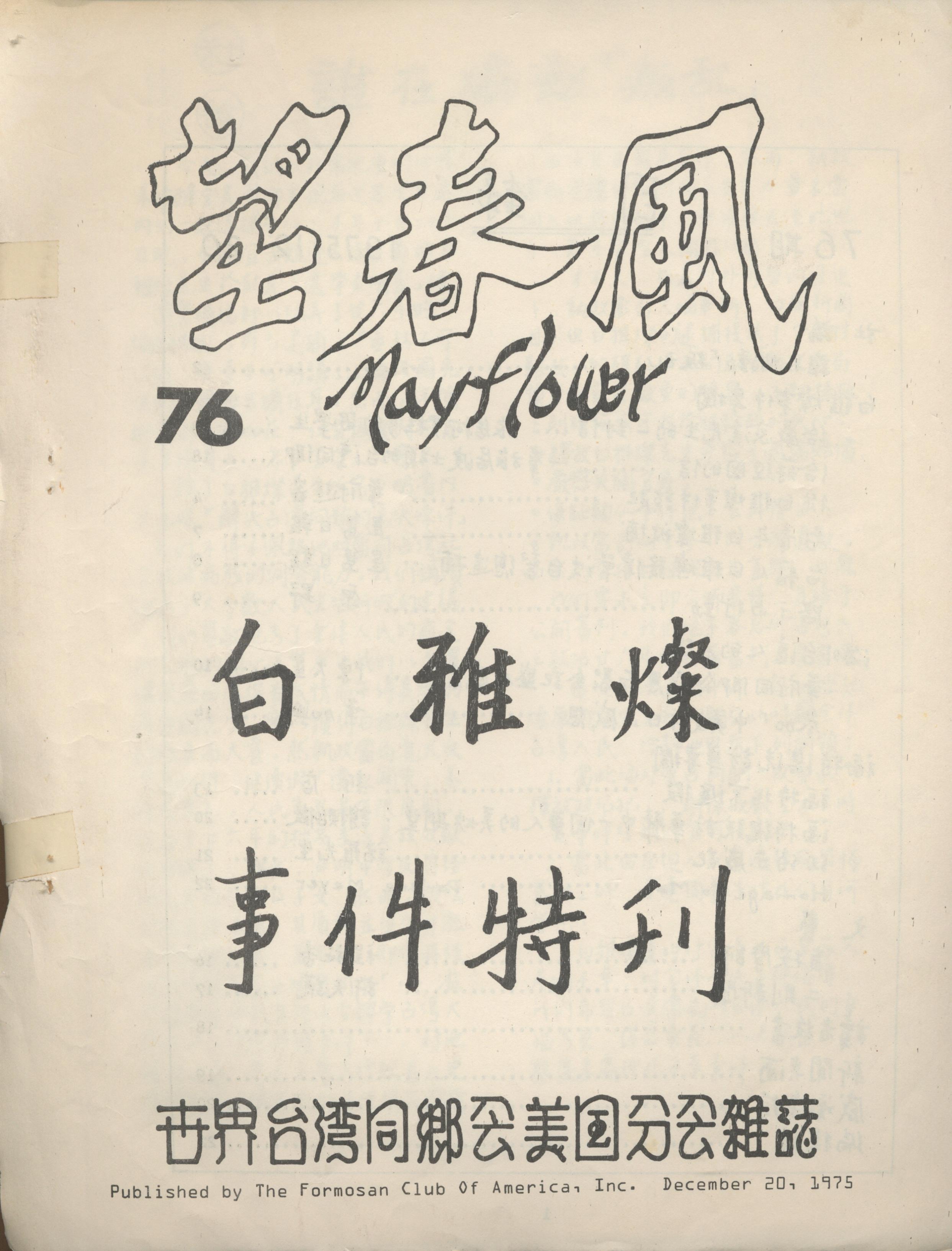 752. MAYFLOWER 望春風月刊 第七十六期/全美同鄉會/1975/12/Magazines/雜誌 June 29, 2015 user Magazines, Publications MAYFLOWER 望春風月刊 第七十六期 Posted in 2015/06