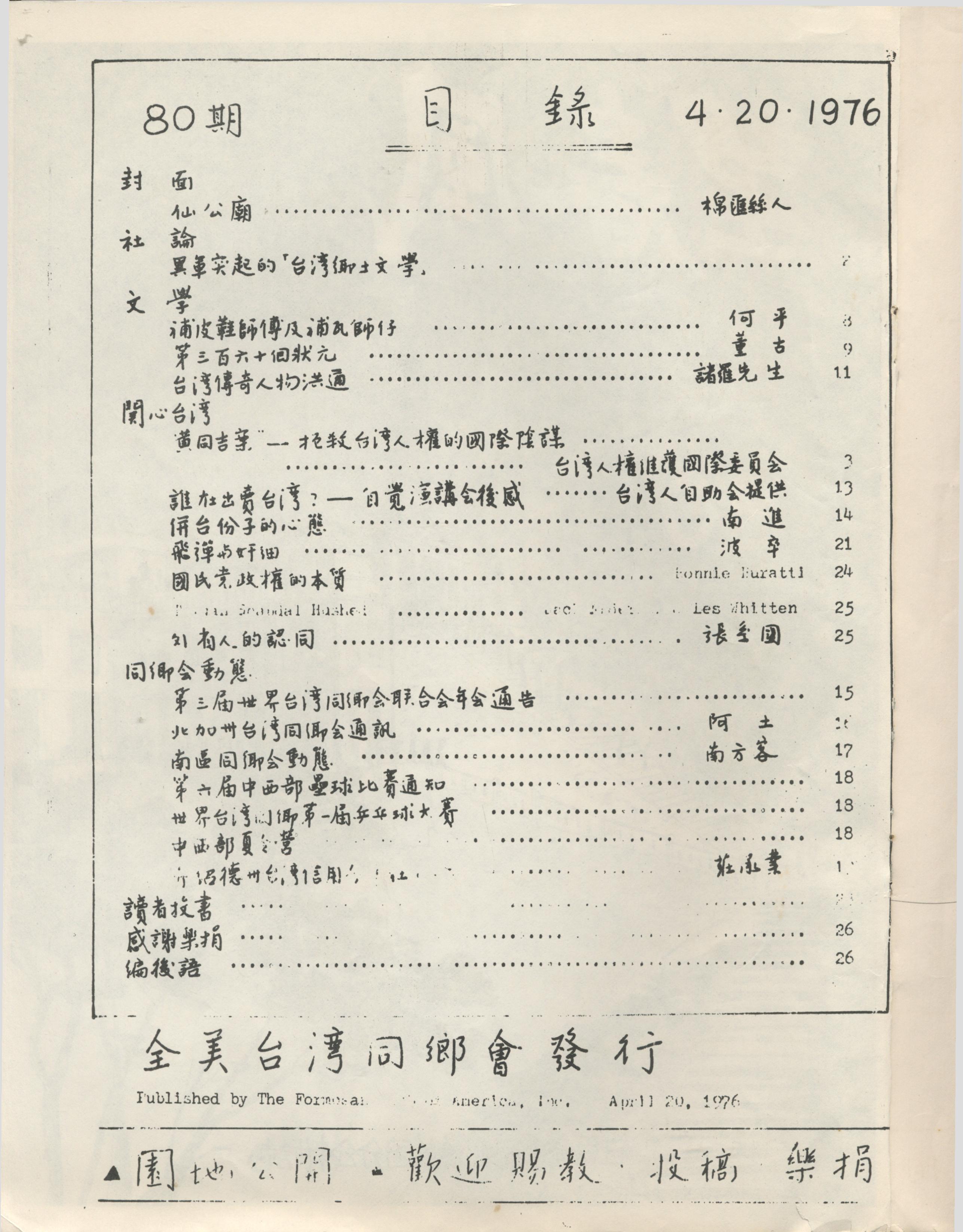 755. MAYFLOWER 望春風月刊 第八十期/全美同鄉會/1976/04/Magazines/雜誌 June 29, 2015 user Magazines, Publications MAYFLOWER 望春風月刊 第八十期 Posted in 2015/06