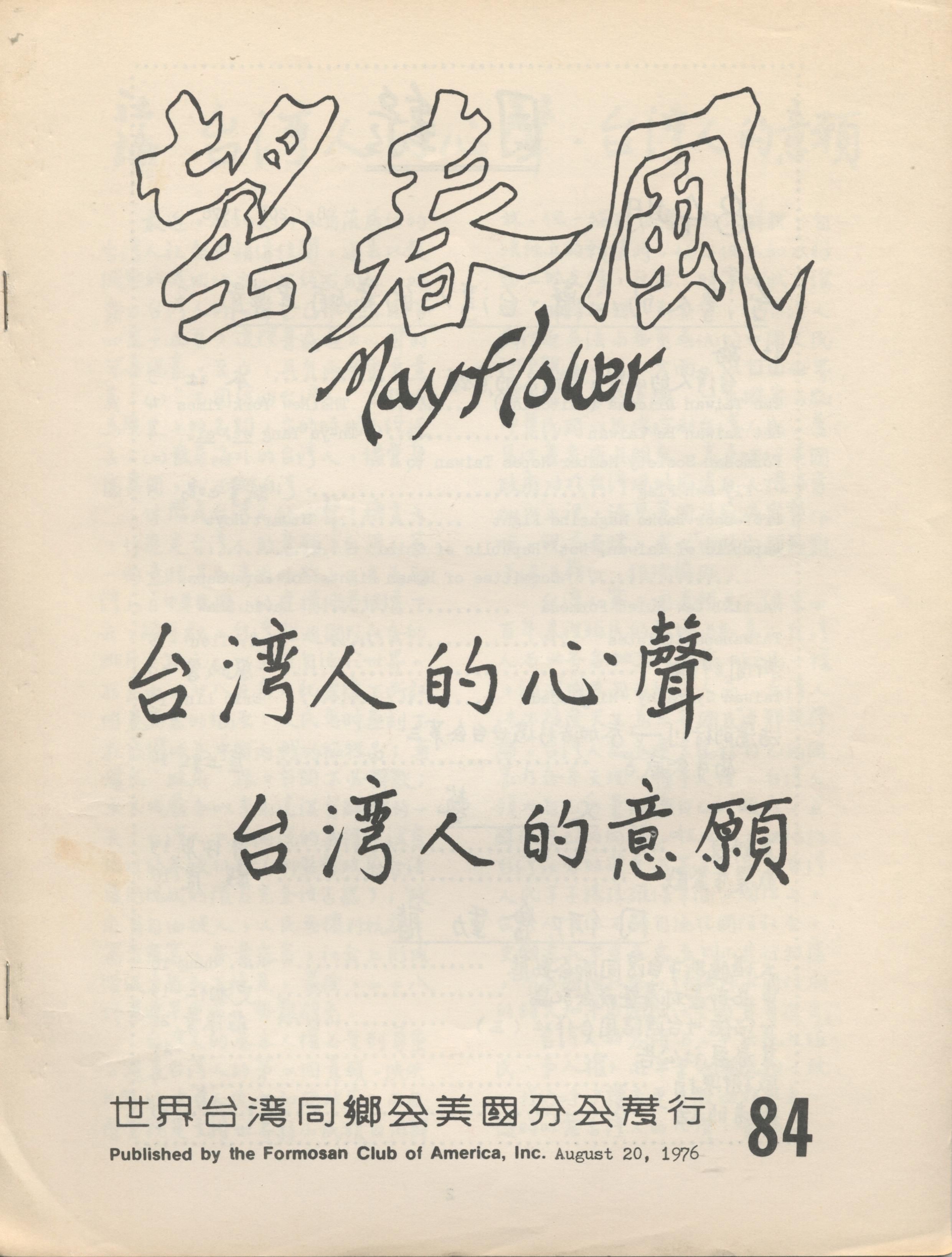 757. MAYFLOWER 望春風月刊 第八十四期/全美同鄉會/1976/08/Magazines/雜誌 June 29, 2015 user Magazines, Publications MAYFLOWER 望春風月刊 第八十四期 Posted in 2015/06