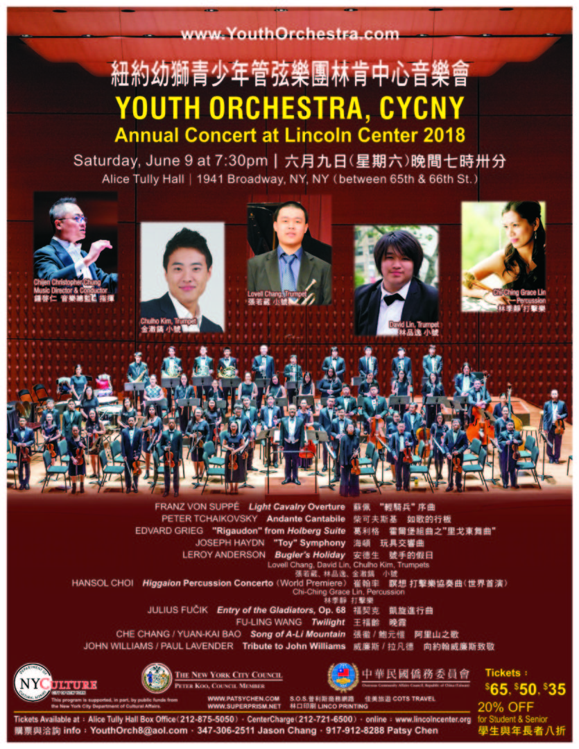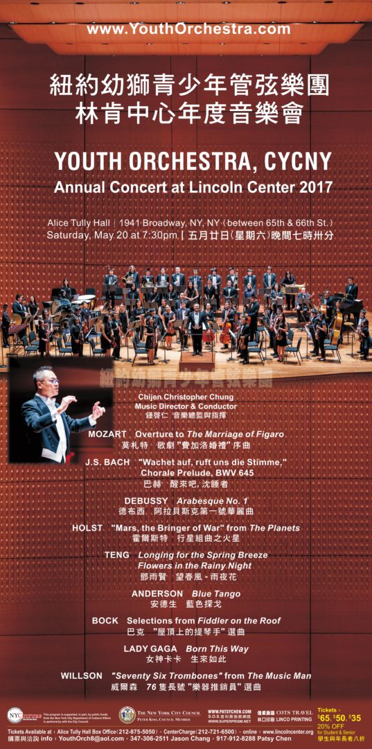 6. Annual Concert at Lincoln Center (林肯中心年度音樂會) by Youth Orchestra, CYCNY (紐約幼獅青少年管弦樂團), New York, NY on 2004, 2005, 2006, 2008, 2009, 2010, 2011, 2012, 2013, 2014, 2015, 2016, 2017 July 28, 2015 user Musical Concerts Source from 方秀蓉 11/2014 Posted in 07/2015