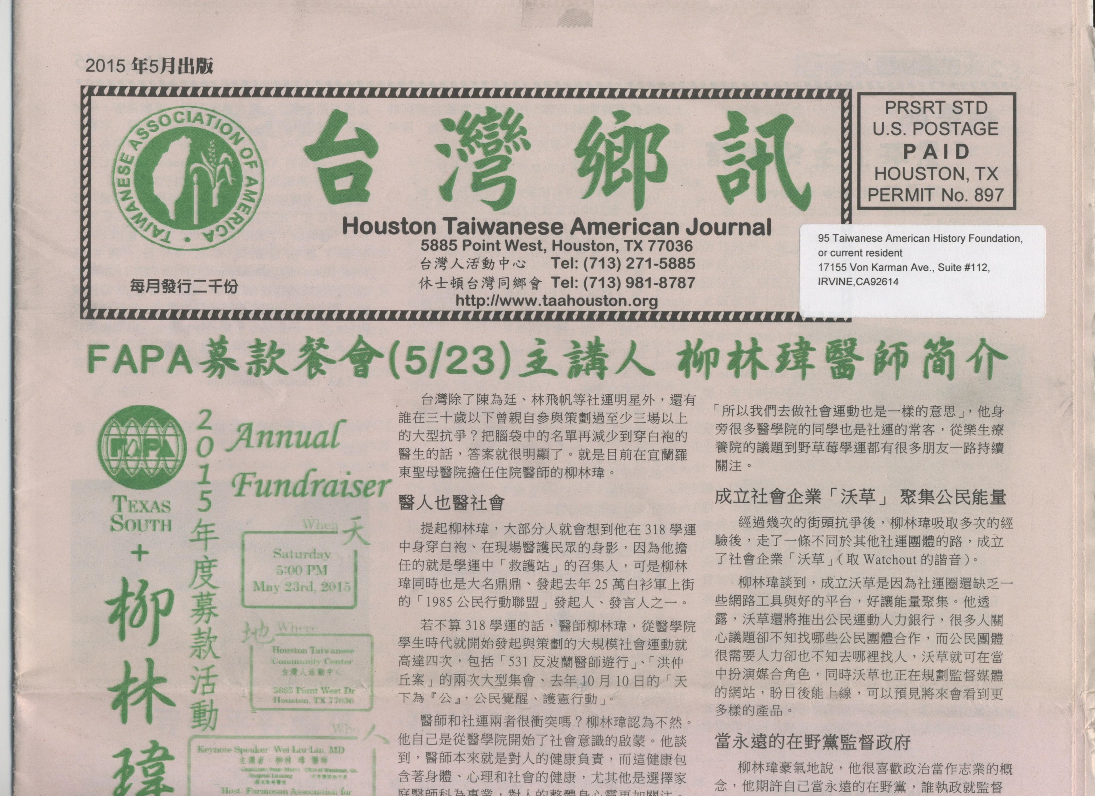 HomeProjects09. Newsletters(Paper Version)Houston Taiwanese American Journal 休士頓台灣鄉訊 by Taiwanese Association of America in Houston