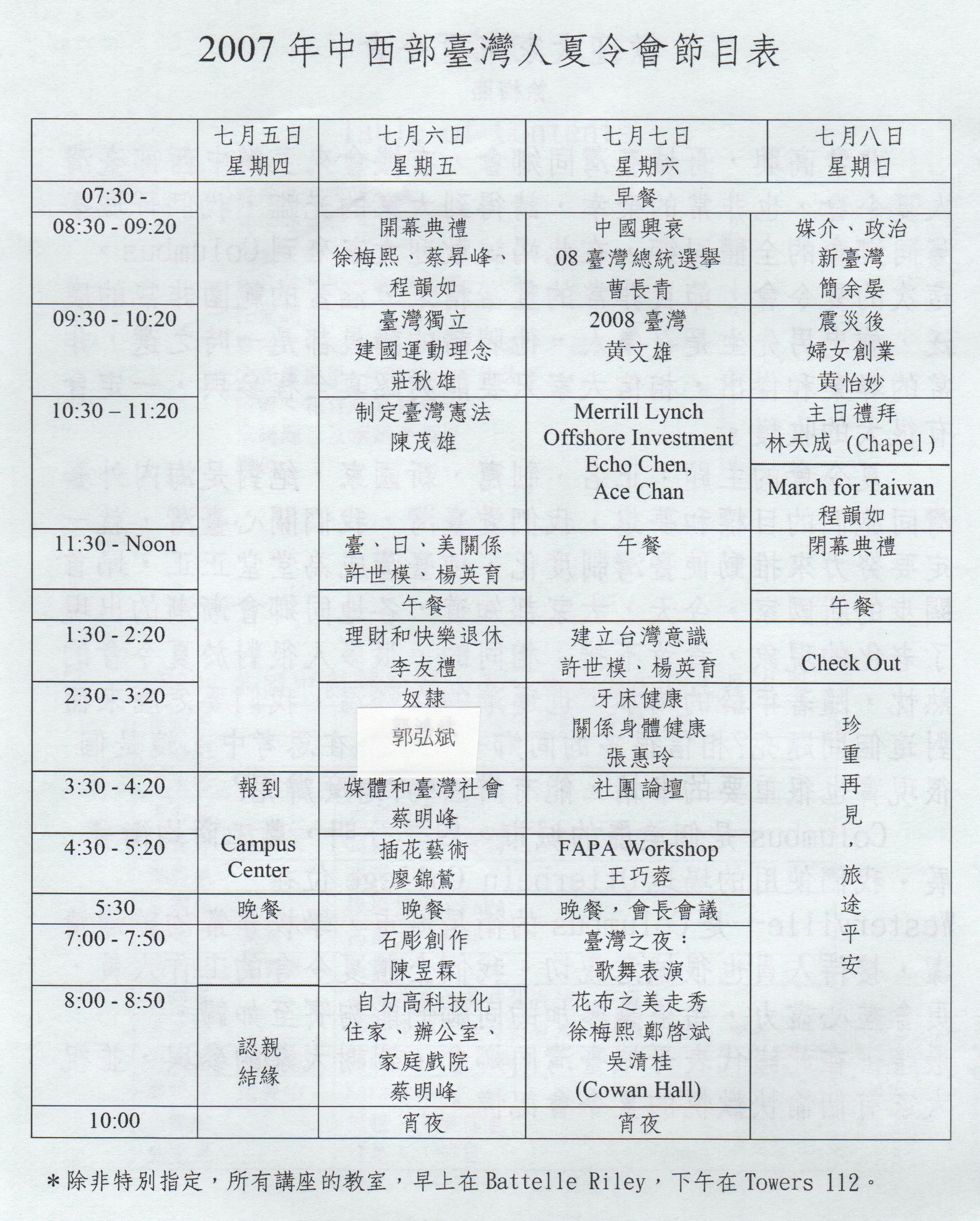 中西部臺灣人夏令會7/5-7/8)