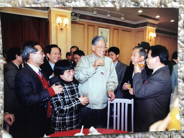 照片6. 1996年應邀去台大演講, 在餐會上剛好李登輝總統也來, 這張照片還登上隔日的中央日報.