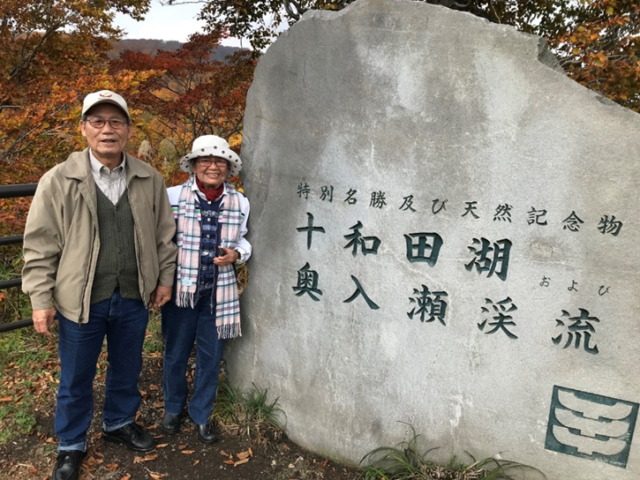 照片8: 與愛妻滿華參加大姐”奧の細道”賞楓團2019年11月攝於十和田湖.