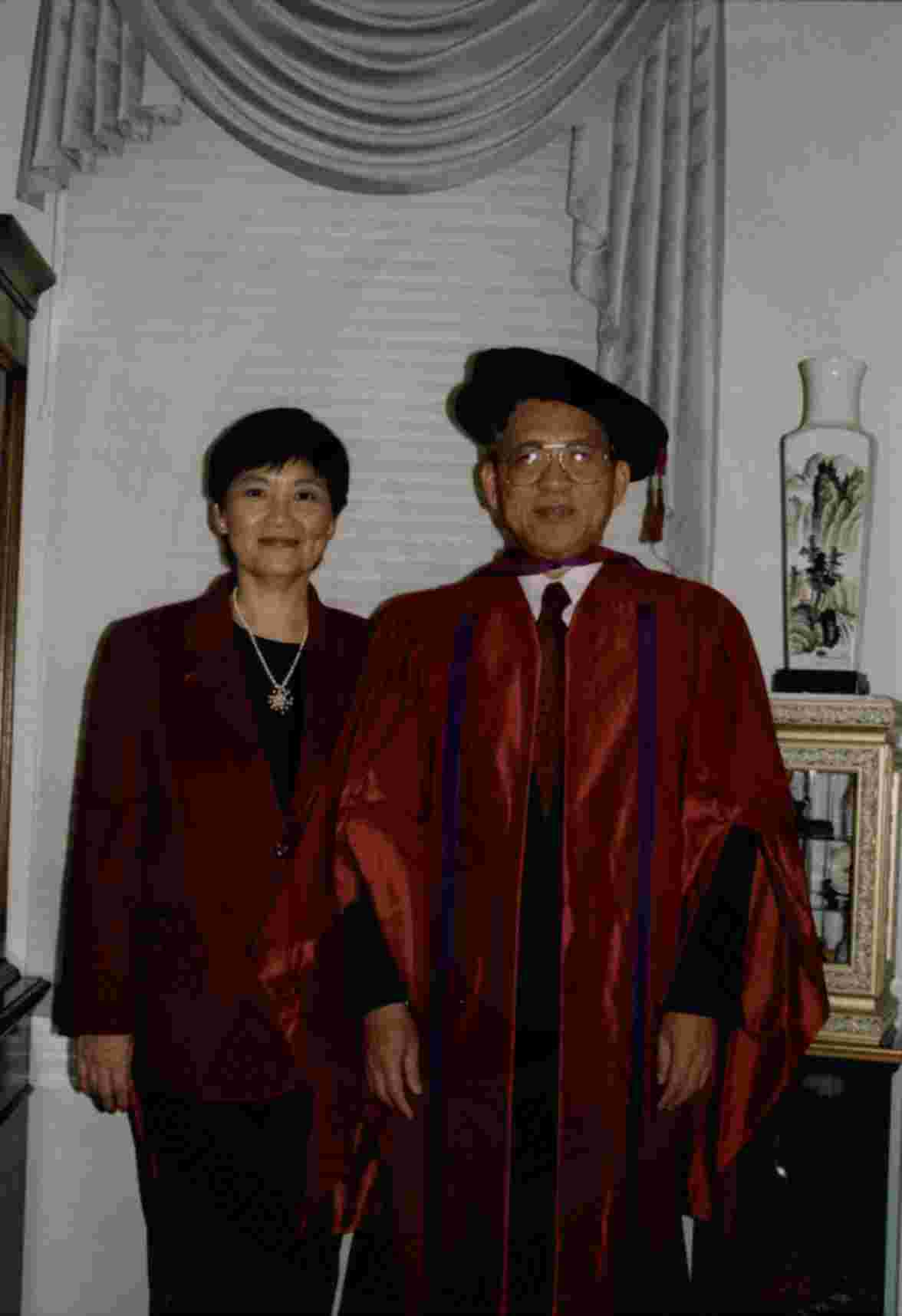 圖:2001年4月23日獲頒美國德州大學健康科學研究中心President Scholar award,與夫人合影。