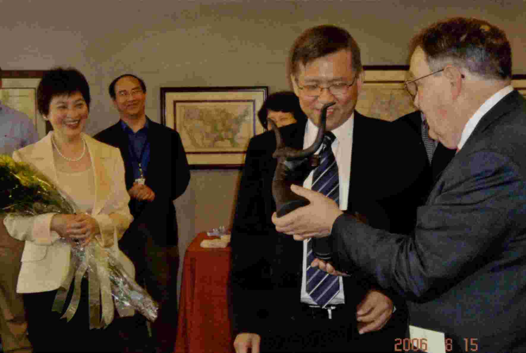 圖:2006年德州大學醫學院為伍院長舉辦歡送餐會,並致贈紀念禮物。