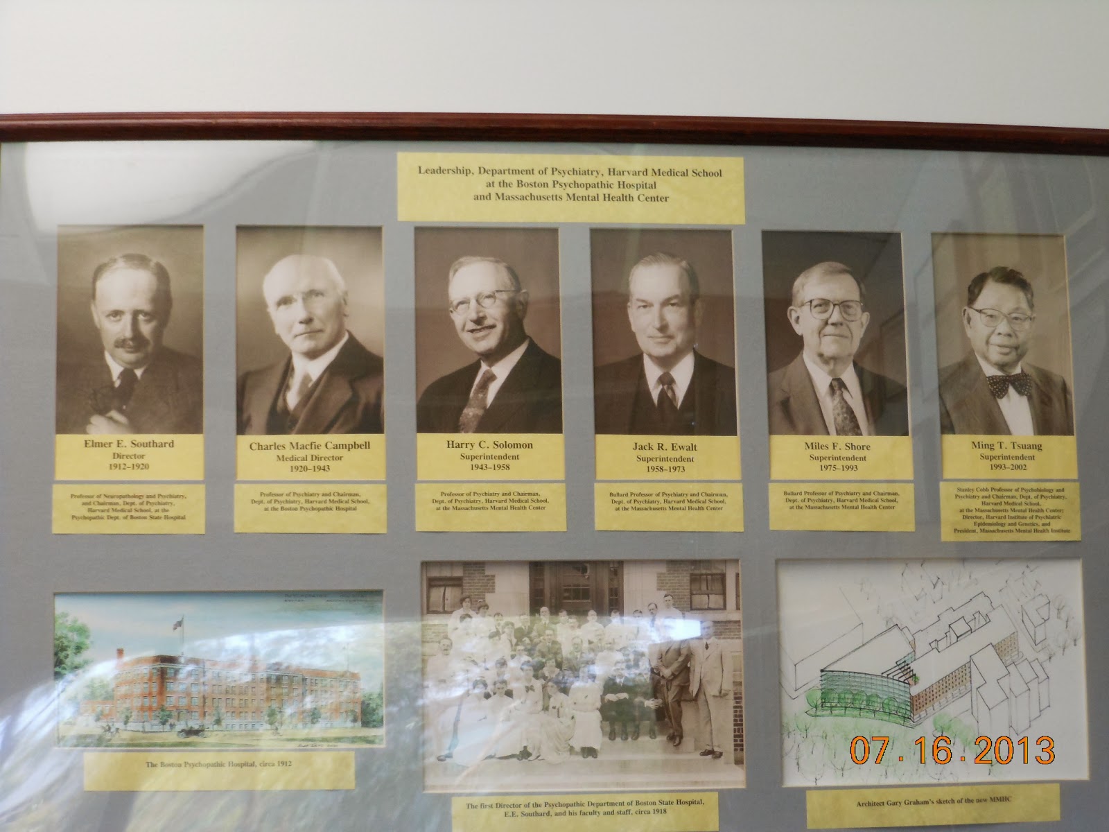 歷任麻州精神疾病研究中心院長。莊明哲醫師(右一)為第六任院長,亦是迄今唯一的亞裔院長。
