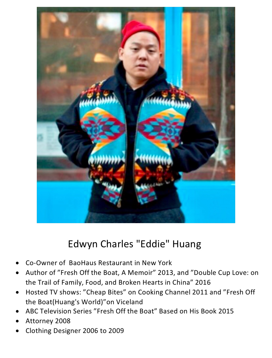 231. Edwyn Charles “Eddie” Huang January 25, 2019 Admin3 Outstanding Taiwanese American Business and Writer 01/25/2019 #160. The Bio Information of Eddie Huang 黄颐銘 97. Discusses memoir, growing up Taiwanese-American / Eddie Huang