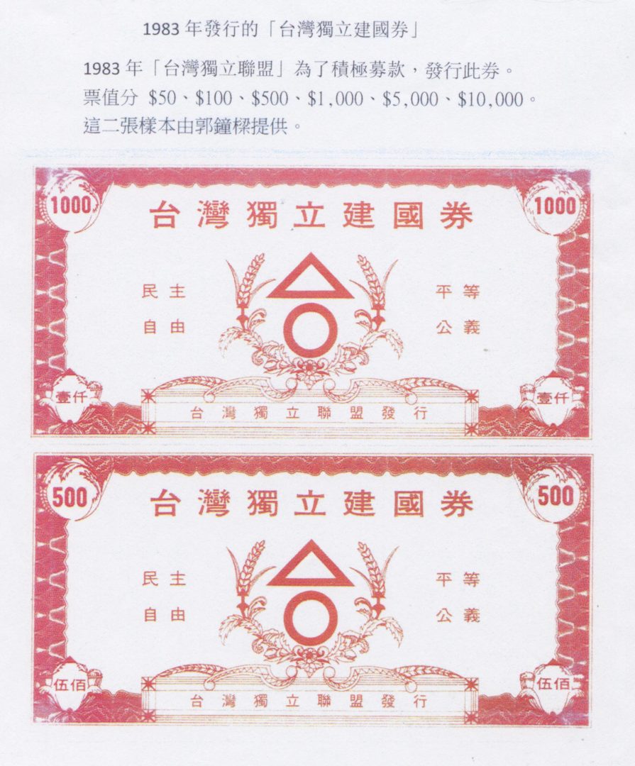台灣獨立聯盟建國券由台灣獨立聯盟發行於1983