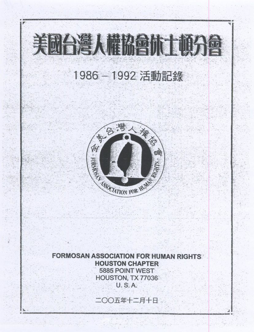全美台灣人權協會休土頓分會佇二零零五年十二月七日發行「1986 – 1992活動記錄」。分會主要業務是頒發一年一次的「台灣政治受難者子女獎學金」,包括小學组、初中組、高中組、大專組各四名,獎學金每年超過三千元。休士頓分會的的特別活動是一九九一年二月十一目設宴歡迎「鄭南榕纪念獎」得獎人施明德和「台灣人權獎」得獎人陳菊。