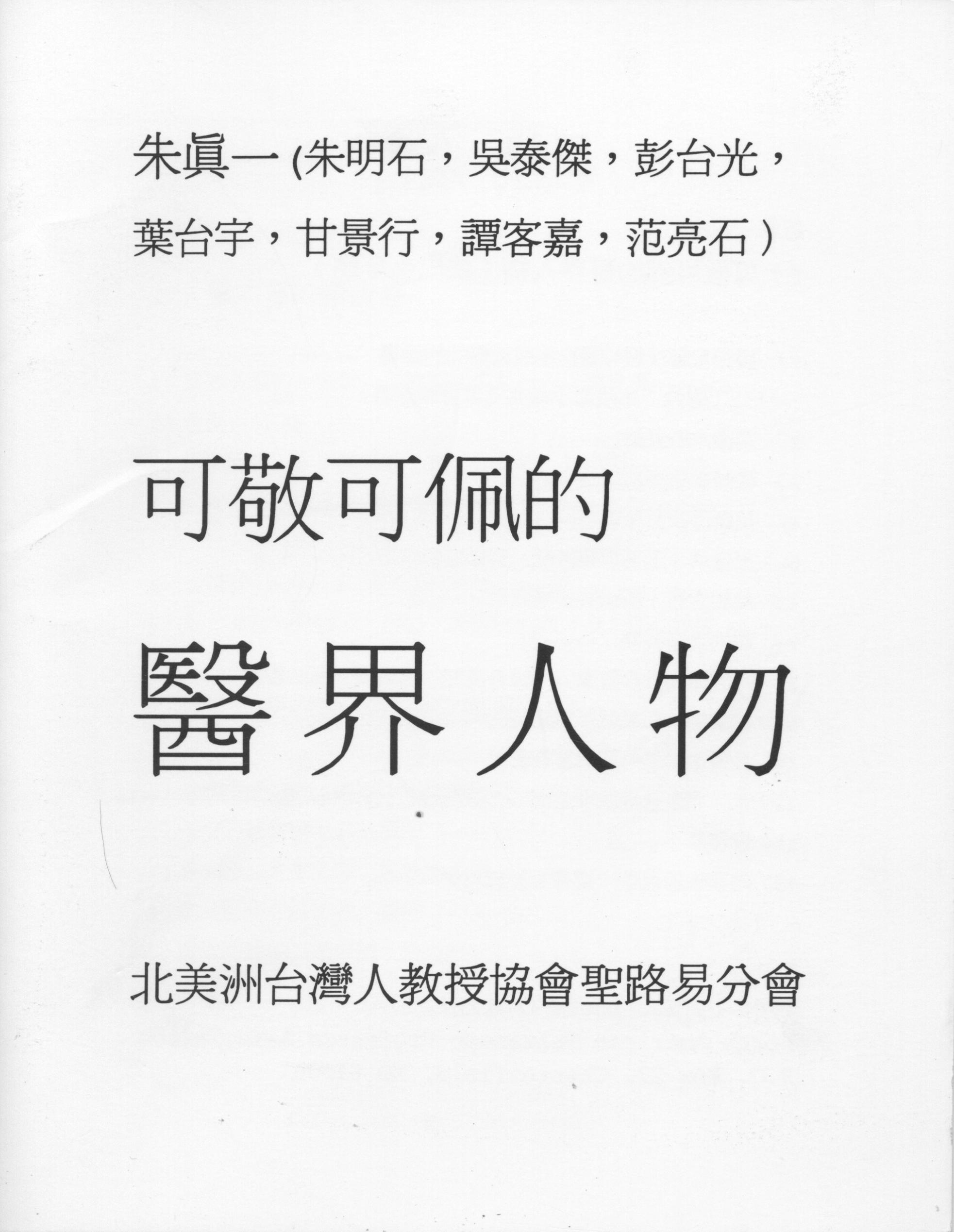 這些醫界人物不管他們的成就是在醫學硏究、醫療服務、政治抗爭、語言文學或社區服務,他們都是我所敬佩的前輩或同事。這小册子不是寫他們的傳記,最主要是他們可敬可佩的貢獻,有些所寫的跟醫學毫無關係,但的確有不可磨滅的貢獻,値得大家學習。爲了保持當時的情況,除了錯字外都未修改,大都用筆名寫,也都在文後寫出筆名以及當時的出版處及年月日。