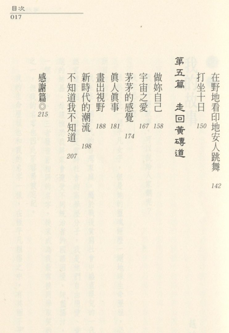 於是,我把這段歷程中的一些精彩經驗及思考寫下來,整理成這本書。同時,我有懺會經歷兩種文化的洗禮,幾年來,我獨自一個人參加無數西 人的自我成長課程,吸取各種不同文化的精華。我願意分享我的經驗,也希望能做為不同文化溝通、了解、提昇的橋梁。