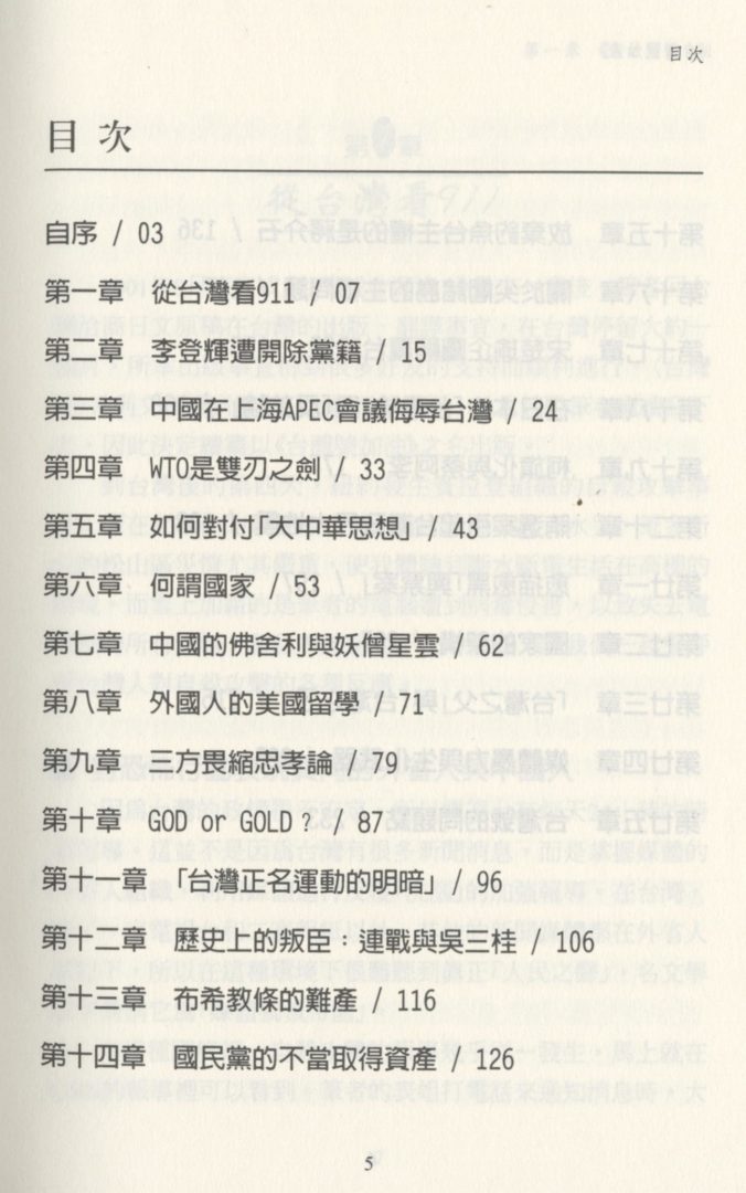 現在的台灣,有很多人對政治冷淡;諸如:「我對政治沒有興趣」、「維持現狀最好」、「政黨輪替也無所謂」、「中間選民J、「中國的威脅」等等,無非是用來掩飾自己的無知或缺乏定見。但是,明年台灣人總統落選,就會變成中國的奴隸,這種情況是沒有維持現狀,也沒有中間選民。