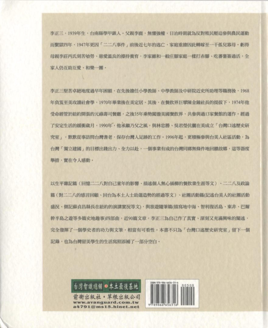 1996年我出席在台北新公園舉辦的「二二八紀念會」寫了「童年的回憶」一文經報刊登載以後,受到讀者朋友的讚賞及鼓勵,遂繼續寫了幾篇生平雜記。 後來參加許多社團並擔任職務,如台灣同鄉會、美東夏令會、阿扁之友會、全僑民主聯盟等等,為了呼籲同鄉們的熱烈參與及支持,以期鼓動風潮造成時勢,也試寫 過幾篇政論性的文章。因為家父牽涉二二八事件,家母及全家人深受其苦,因此我也對二二八多所著墨。由於在台灣師大時主修史地,來美後讀社會學,到世界各地 旅遊觀賞歷史地理,探訪民情風俗變成我人生一大喜好,遊罷歸來就寫些遊記隨筆感言留下紀錄。所以生平雜記、旅遊隨筆、社團活動、紀念二二八事件等就成了本 書的主要內容。