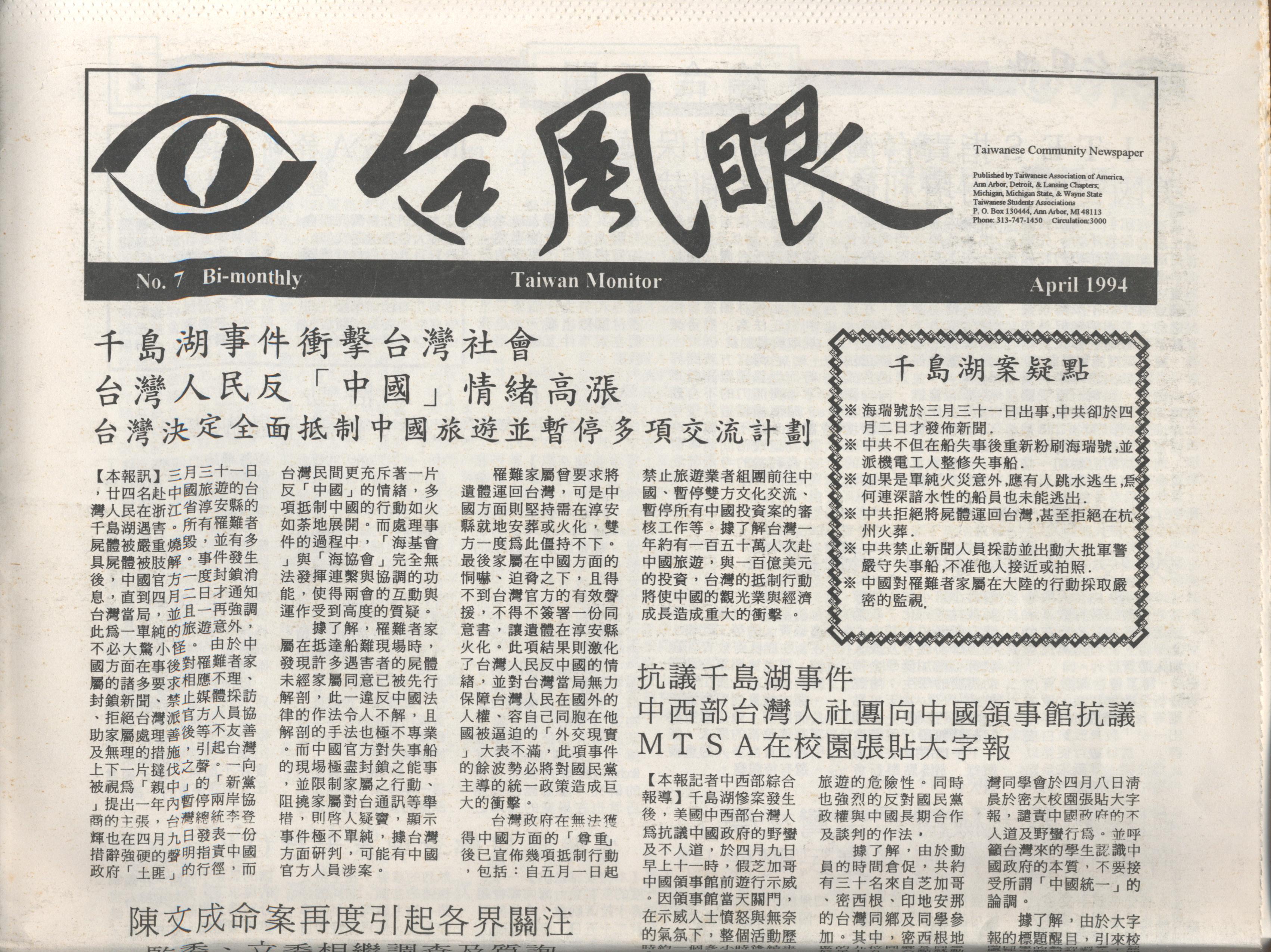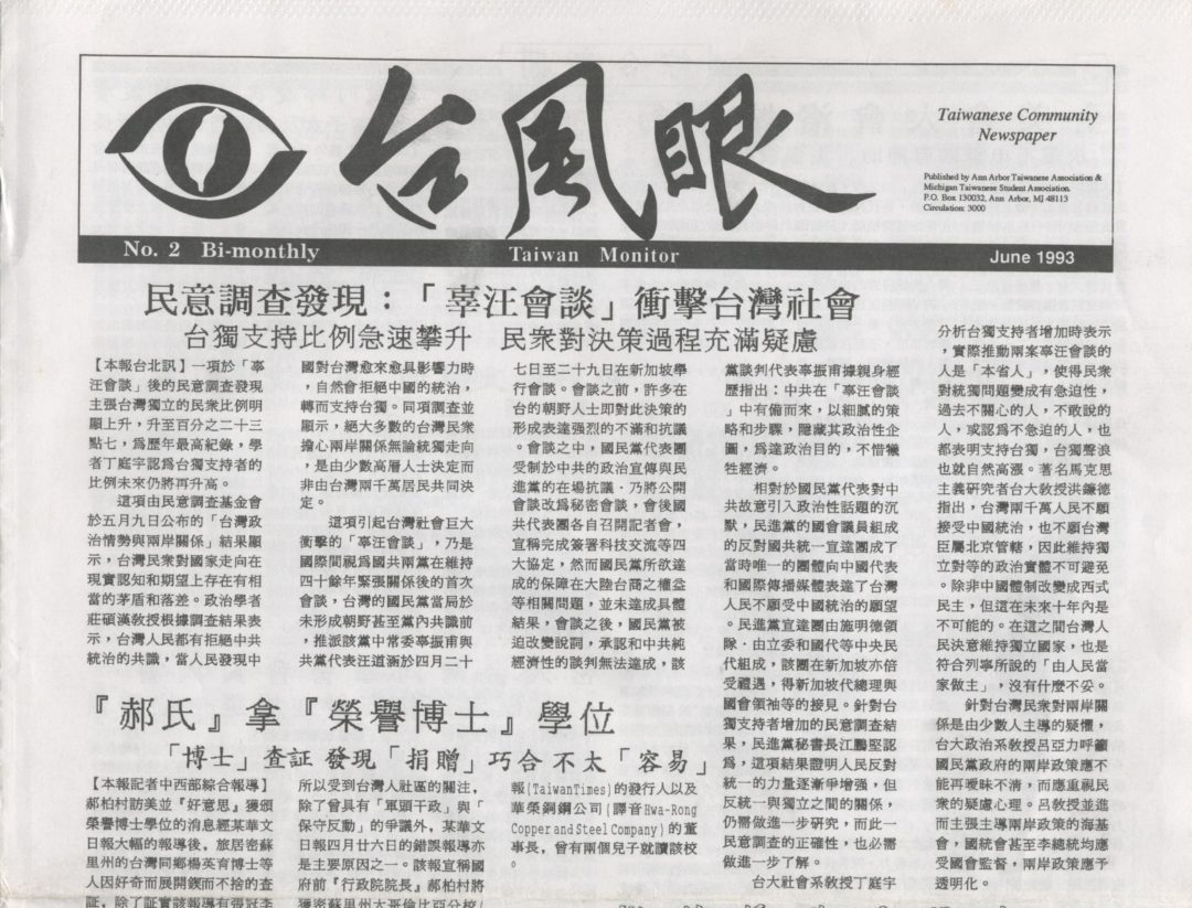 Taiwan Monitor 台風眼 Taiwanese Community Newspaper by TAA-Ann Arbor, Detroit, and Lansing Chapters