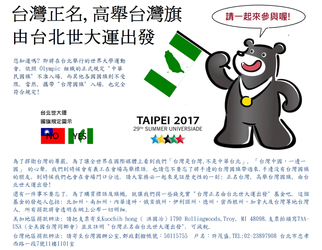 台灣正名由台北世大運出發》募捐最後報告,多謝大家支持!
