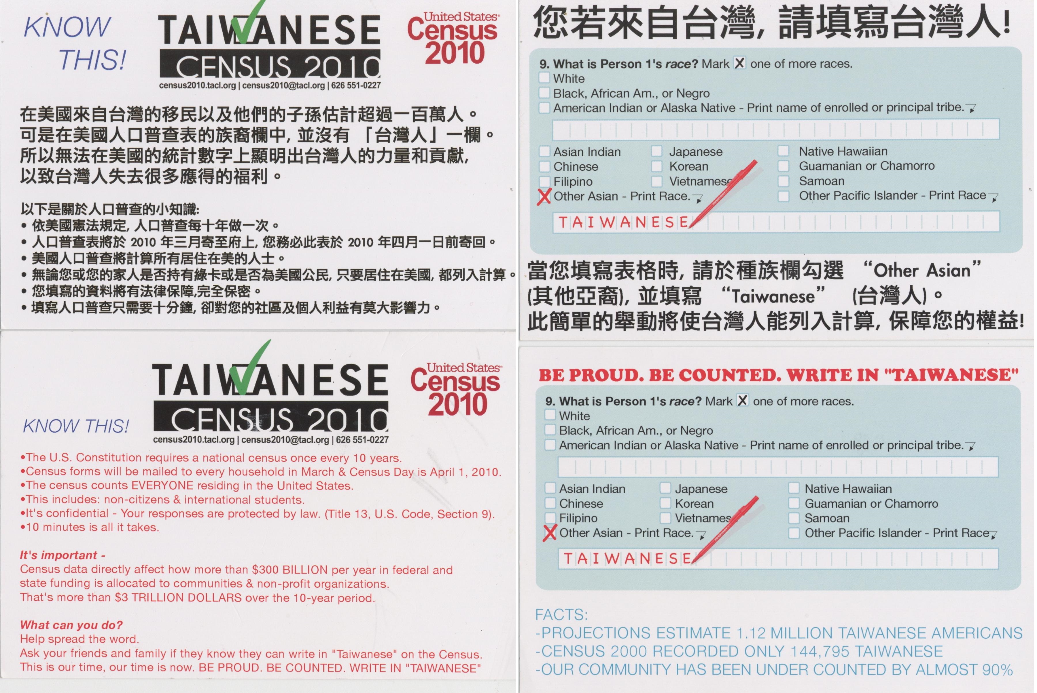 The following was written about the importance of writing in “Taiwanese” on the 2010 US Census: