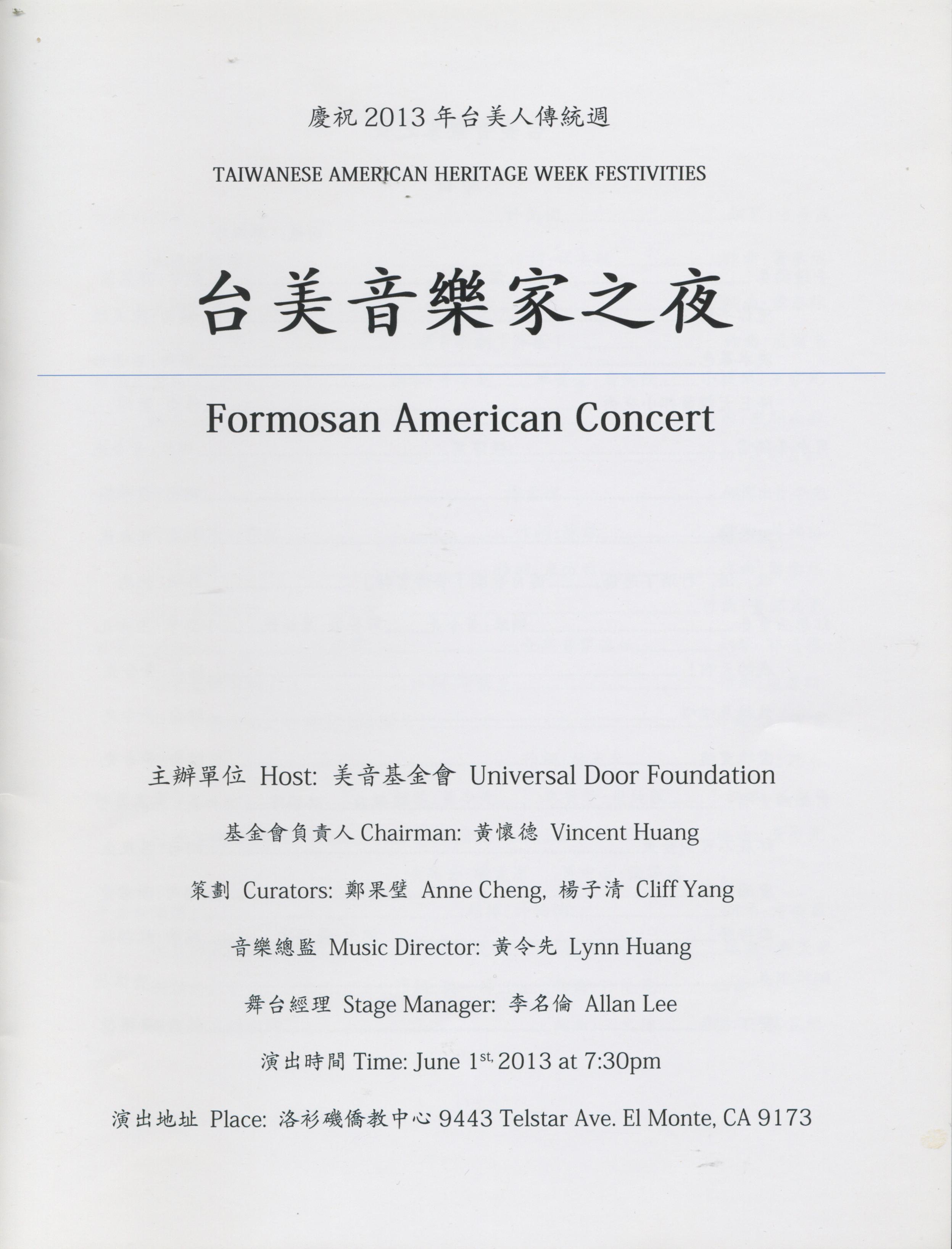 35. Formosan American Concert (台美音樂家之夜) by Universal Door Foundation (美音基金會), El Monte, CA on 06/01/2013 July 31, 2015 […]