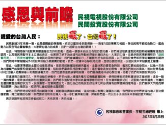 10. Many of T.A. together placed an advertisement in the Liberty Times (自由時報)to support Dr. Kuo’ Group for Retaining their management of Formosa Television Inc. (民視) May 26, 2017 […]