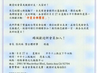 102. 仲夏音樂饗宴 by Taiwanese Chamber of Commerce in Orange County (美國加州柑縣台美商會), Santa Ana, CA on 08/27/2017 August 14, 2017 […]