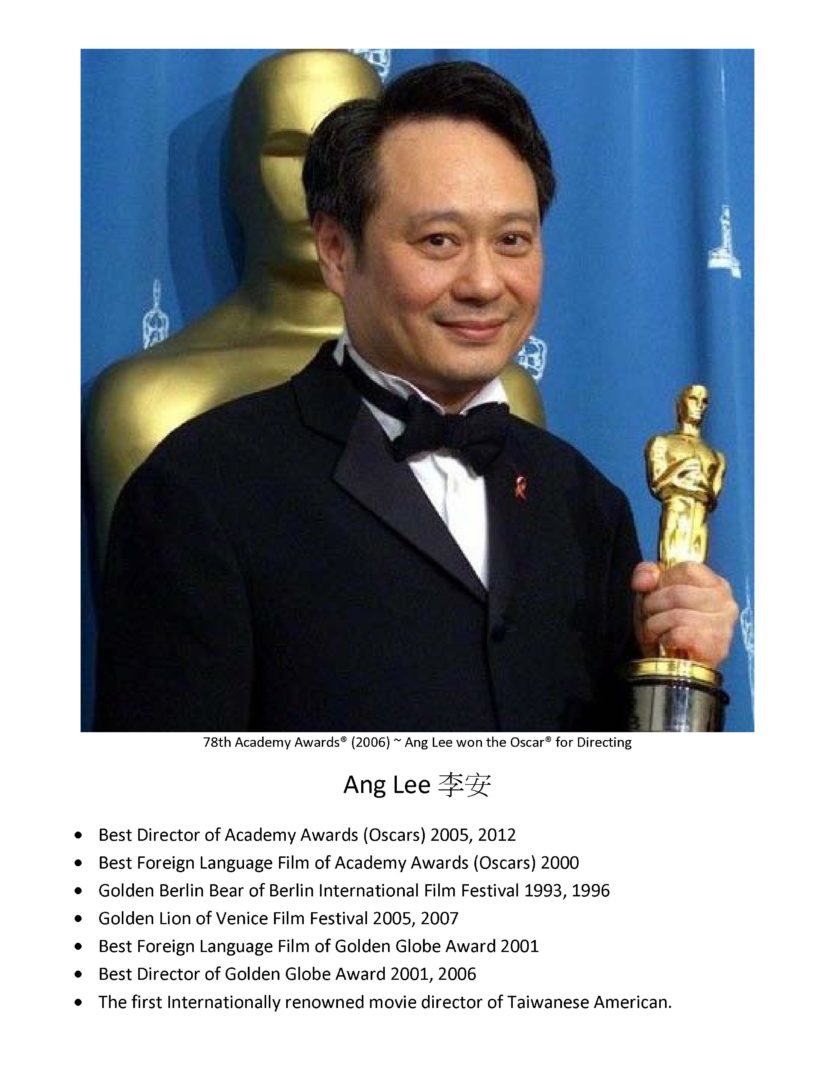 29. Ang Lee 李安 August 13, 2018 Admin1 Outstanding Taiwanese American Movie Director 08/13/2018 #55. The Bio Information of Ang Lee 李安 25. Ann Lee 李安 / The first Oscar Winner of Movie Director / 2013 229. 台美人的榮耀(Pride of Taiwanese American ): 8, 李安 導演/-/2015/04 270. 李安與林惠嘉 牽手與推手/2015/01