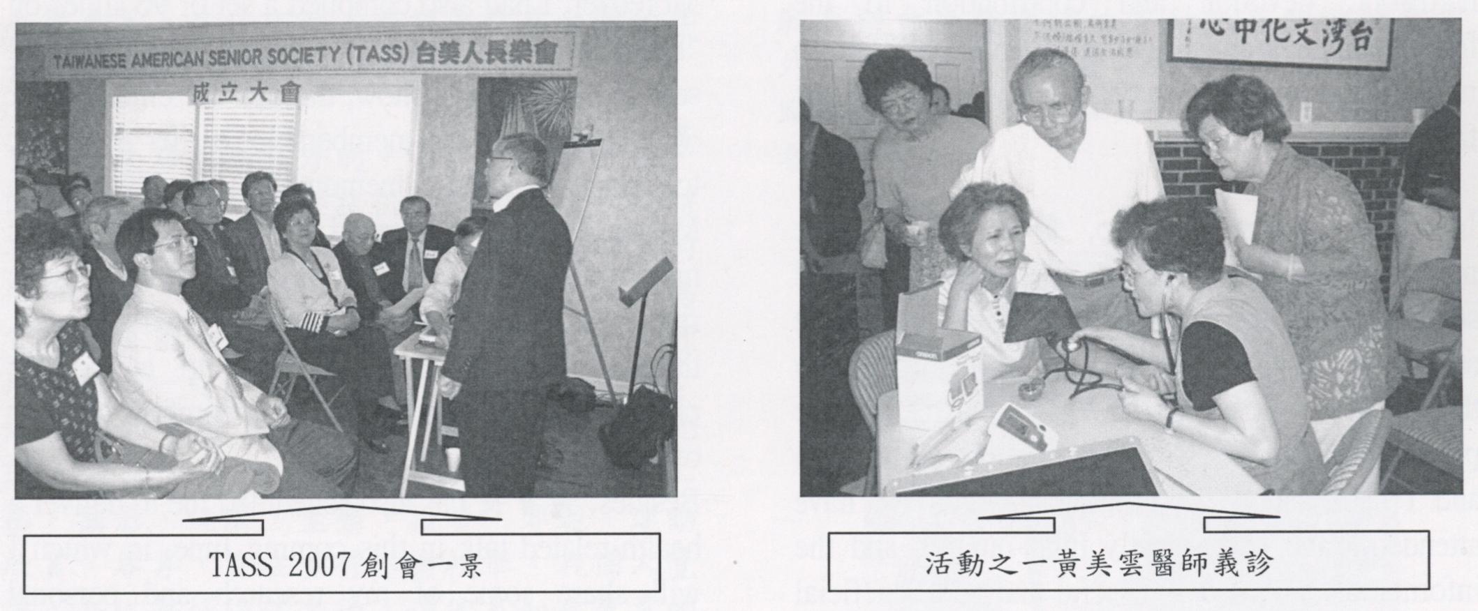 在華府地區,他們考慮當地環境人才資源,成立了一個新的社團,針對台美人55歲以上希望過著積極,健康,快樂,有趣的生活以及結交新友,保持社會人際關係而設立的。二零零七年四月升八曰創會時有72人參加,選出十三位理事,產生了一位會長。理事們分工合作,努力編製節目,本著創會宗旨”學習新知,健身,養心和永續青春”的信念。TASS開始提供每週一次的活動,其項目包羅萬象,有科技,學術,醫學演講,生活經驗的傳授,手藝學習,經濟理財,法律常識,休閒徤身及參觀旅遊等等。