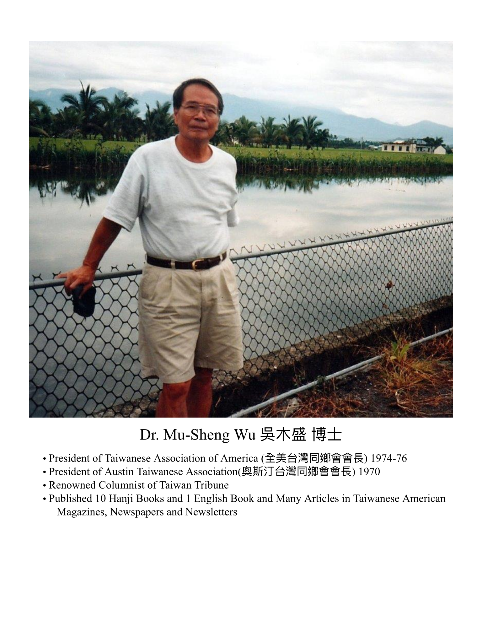 44. Dr. Mu-Sheng Wu 吳木盛 博士 August 24, 2018 Admin3 Outstanding Taiwanese American Community Services 08/24/2018 #36. The Bio Information of Dr. Mu-Sheng Wu 吳木盛博士 13. Collection of Dr. Mu Sheng Wu 吳木盛博士的收藏 55. 離鄉 / 吳木盛 56. 離鄉難,回井更難 / 吳木盛 123. 職業洗碗生/ 吳木盛/2014/10 325. Dr. Musheng Wu (吳木盛) / The Famous Writer (台美人第一筆) 544. 全美台灣同鄉會第三屆會長-吳木盛博士的故事 / 吳木盛 /04/2017