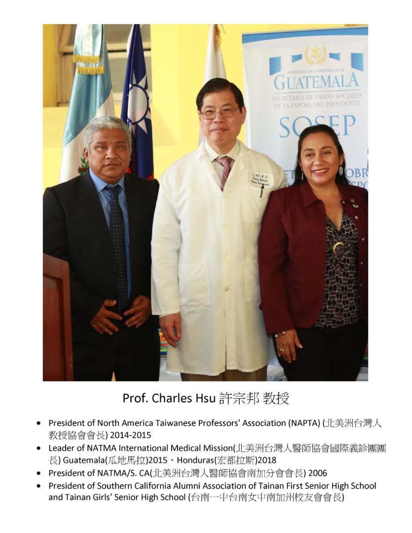 49. Prof. Charles Hsu 許宗邦教授 August 27, 2018 Admin1 Outstanding Taiwanese American Community Services 08/27/2018 Posted in 08/2018 #1047. The Bio Information of Prof. Charles Hsu 許宗邦教授 274. 讓我們一起去義診 / 許宗邦 /01/2017 我的醫療任務經驗