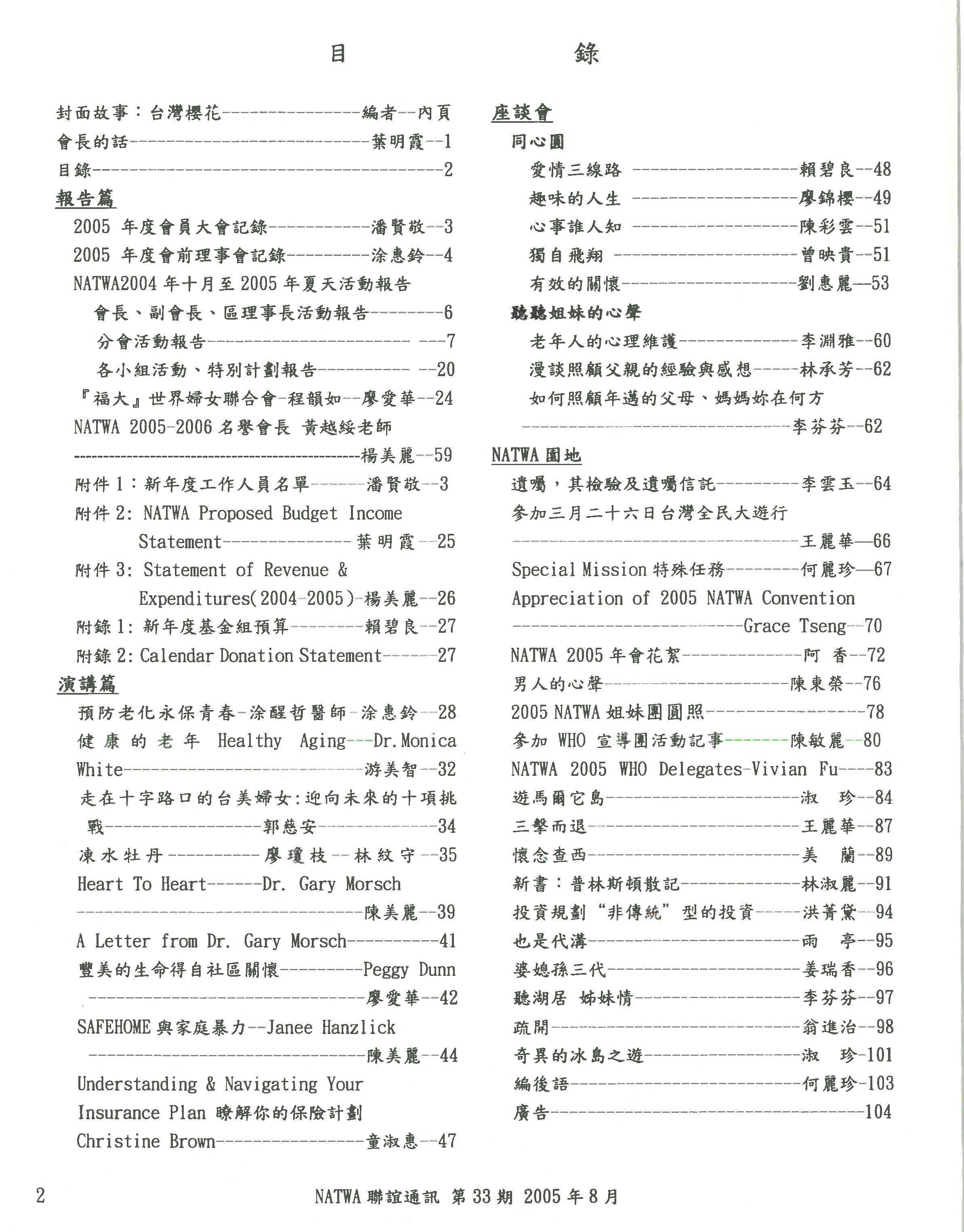 北美洲台灣婦女會聯誼通訊 第三十三期