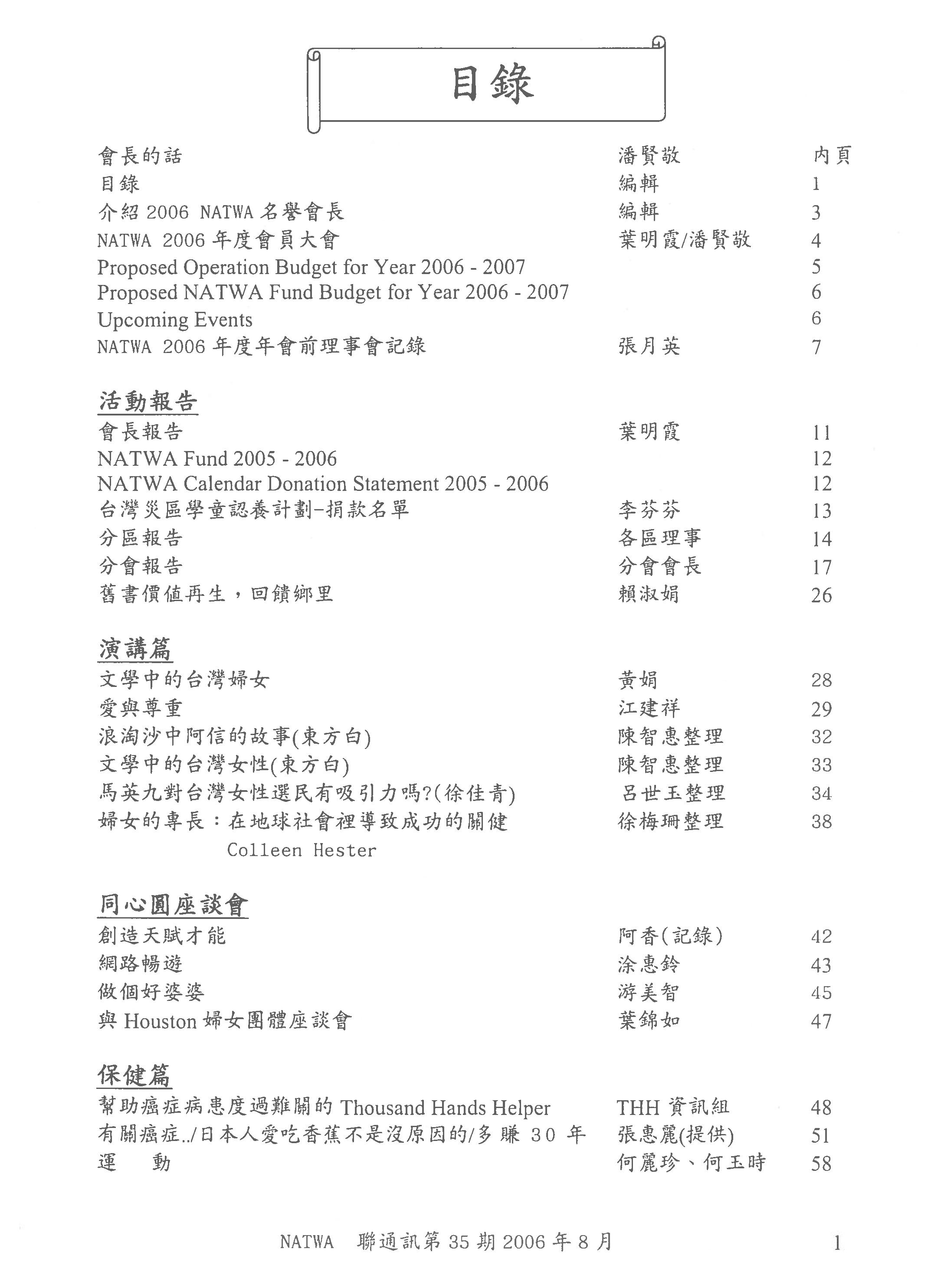 691. 北美洲台灣婦女會聯誼通訊 第三十五期/北美洲台灣婦女會/2006/08/Magazines/雜誌