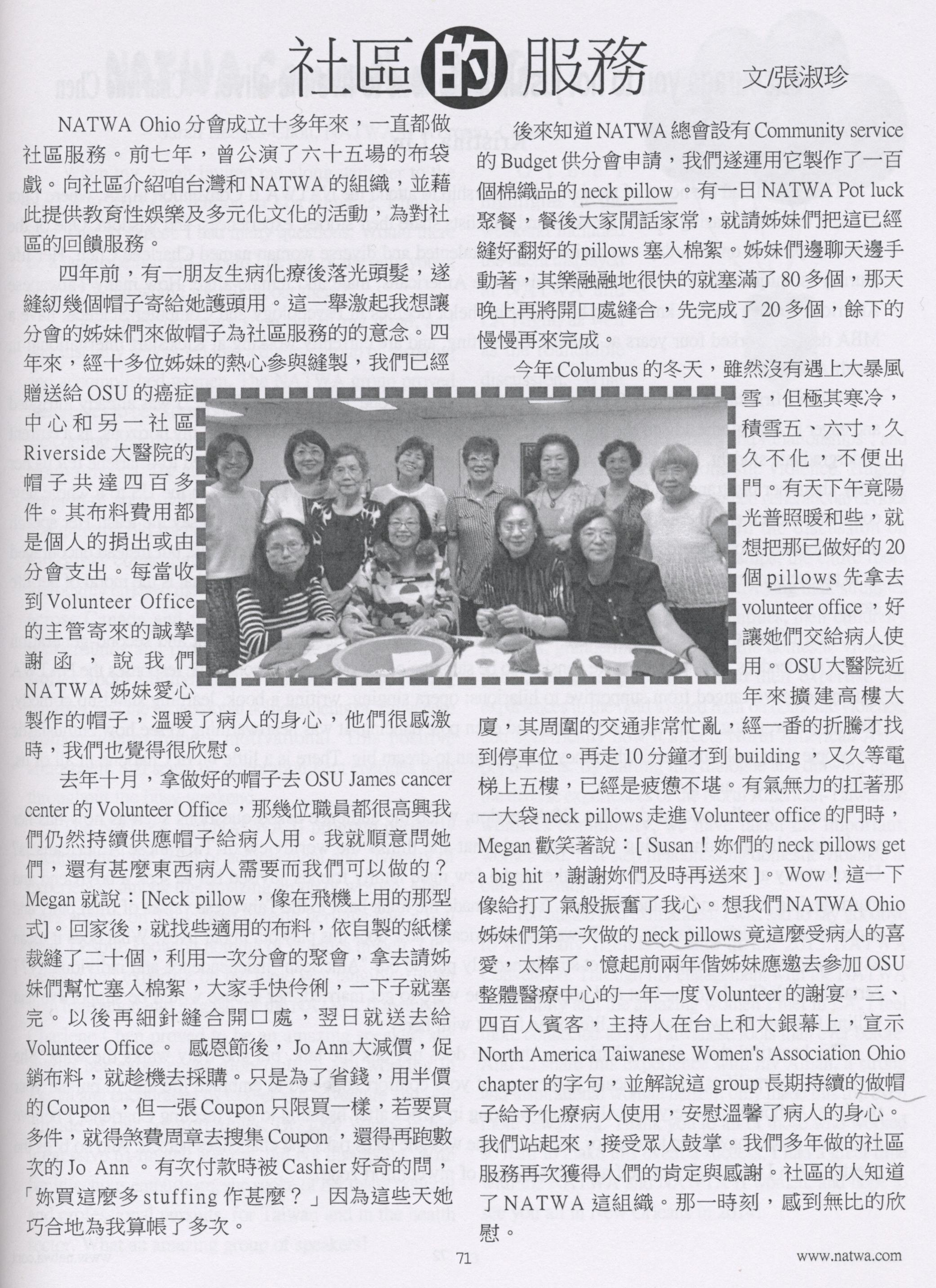 7. 社區的服務 製作帽子與Neck Pillow by NATWA Ohio August 4, 2015 Admin1 08. Outreach Activities 社區的服務 製作帽子與Neck Pillow by NATWA Ohio