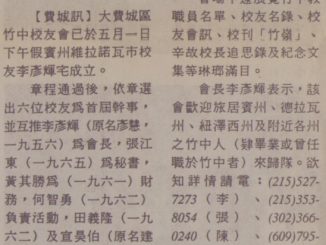 National Hsinchu Senior High School Alumni Association of Greater Philadelphia 大費城區新竹中學校友會 September 1, 2016 […]