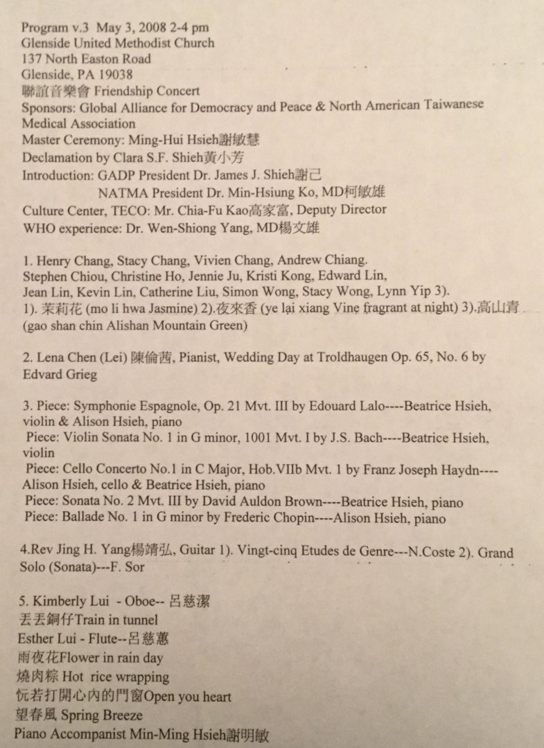 Concert- Awareness for Taiwan’s Participation in World Health Organization