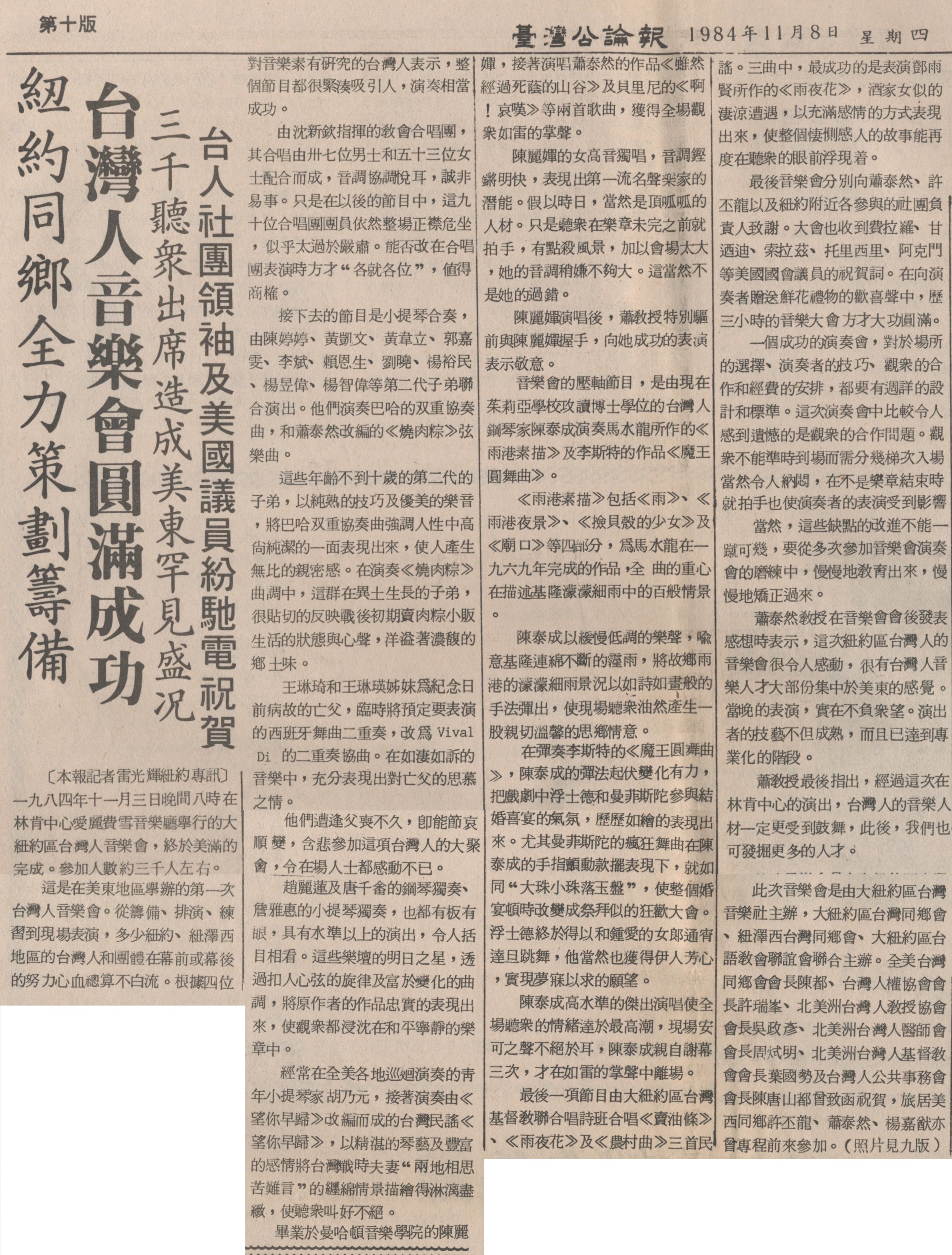 大紐約區台灣人音樂會 1984/11/03