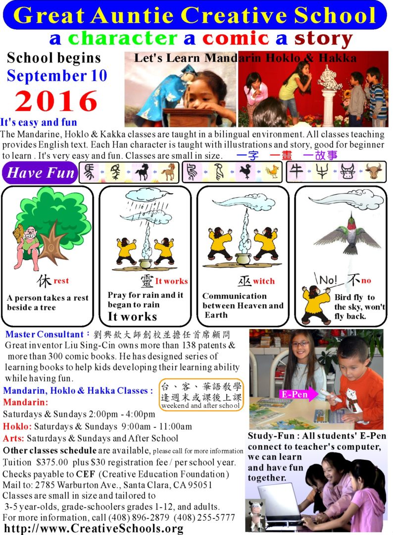 23. Creat Auntie Creative School 大嬸婆創意學校 September 6, 2017 Admin1 10. Taiwanese Language and Taiwanese American Schools http://www.creativeschools.org/ Posted in 09/2017