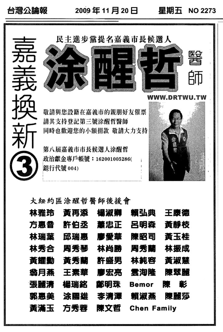 HomeProjects12. Political and Social Activities Related with Taiwan大紐約區涂醒哲醫師後援會 2009