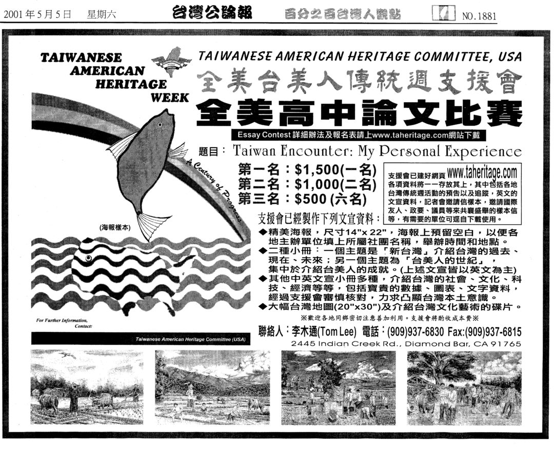 Essay Contest by Taiwanese American Heritage Committee, USA 全美台美人傳統週支援會 高中論文比賽 January 9, 2018 Admin1 Taiwanese American Heritage Week Posted in 01/2018