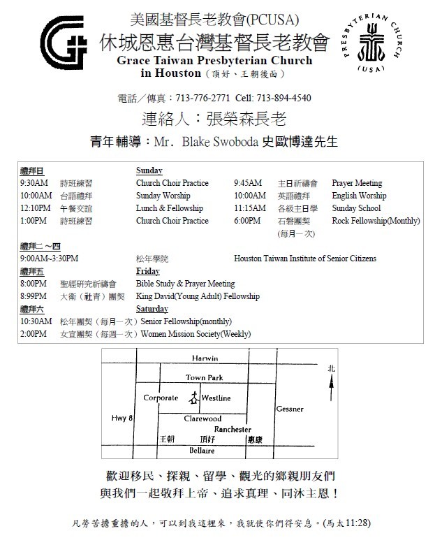 Grace Taiwan Presbyterian Church in Houston 休士頓恩惠台灣基督長老教會