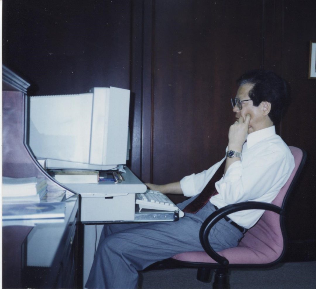 日子一天又一天過,轉眼你已走了一年了。雖然我每天都打起精神到學校去消磨時間。可是回到家時,照列的往你的書房一暼,不爭氣的淚水就往下流。我,再也聽不到你對我說一聲hi,也再聽不到你的幽默對我說:、「因為想妳而藉洒消愁」,看到我忙不過來時說:「該多娶個某來辦忙」。向你問寒,「有沒有穿內衣時?」,你說:「it is a Victoria secret」。你總有出其不意的笑語讓我飽笑不停。更看不到你犀利的文筆與說不完的台灣政情。你的「剪不斷台灣情結」與「從美國看台灣」不也都是在這裡書寫出來的。書桌上還放著你沒看完的書,如今只見空蕩蕩的椅子,卻見不到你的踪影,心裏ㄧ陣酸痛。