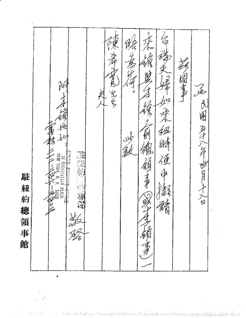 駐紐約總領事館敬啟