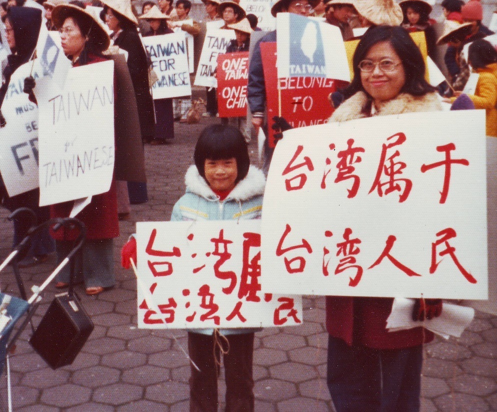 「我們每次有示威遊行時,總要參加,女兒學會走路後,我們也帶她一起參與。南穎很高興見到阿姨們和表姊 “Cousin Kathy” (大姊的女兒)。有時我們讓她自己做示威牌,她不識字,但會像畫圖一樣的照畫,她不懂為什麼每次總有不少人要戴特大的黑眼鏡或口罩,或戴帽子來遮臉。……….(這是為了避免被國民黨的抓耙子照相。)