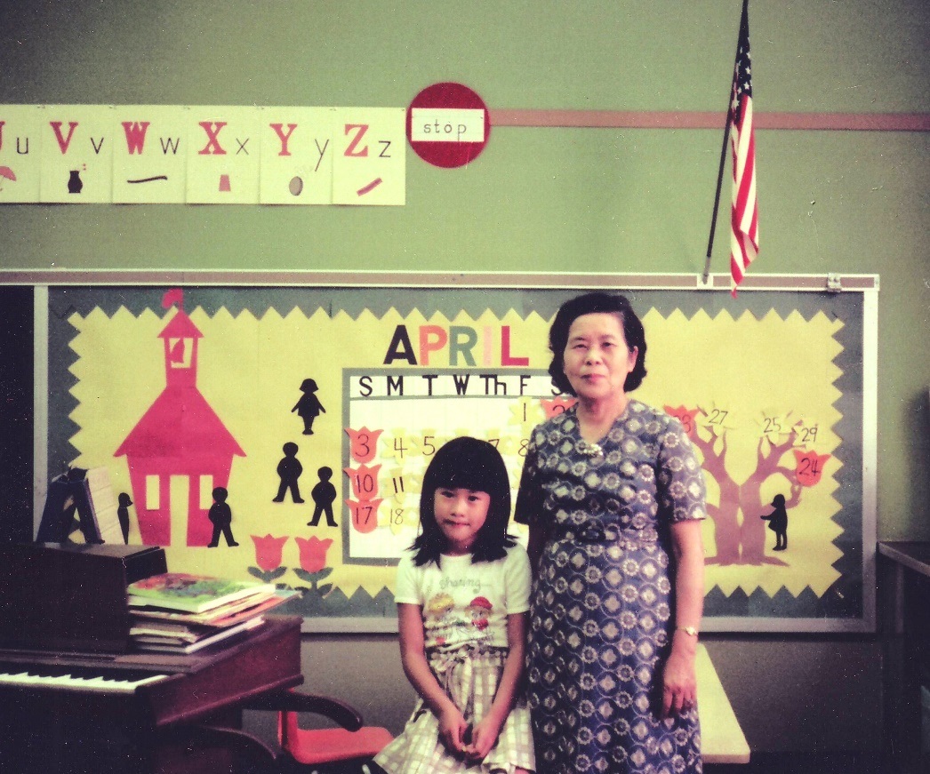 母親第一次赴美,攝於張郁彬服務的小學教室,1977年4月