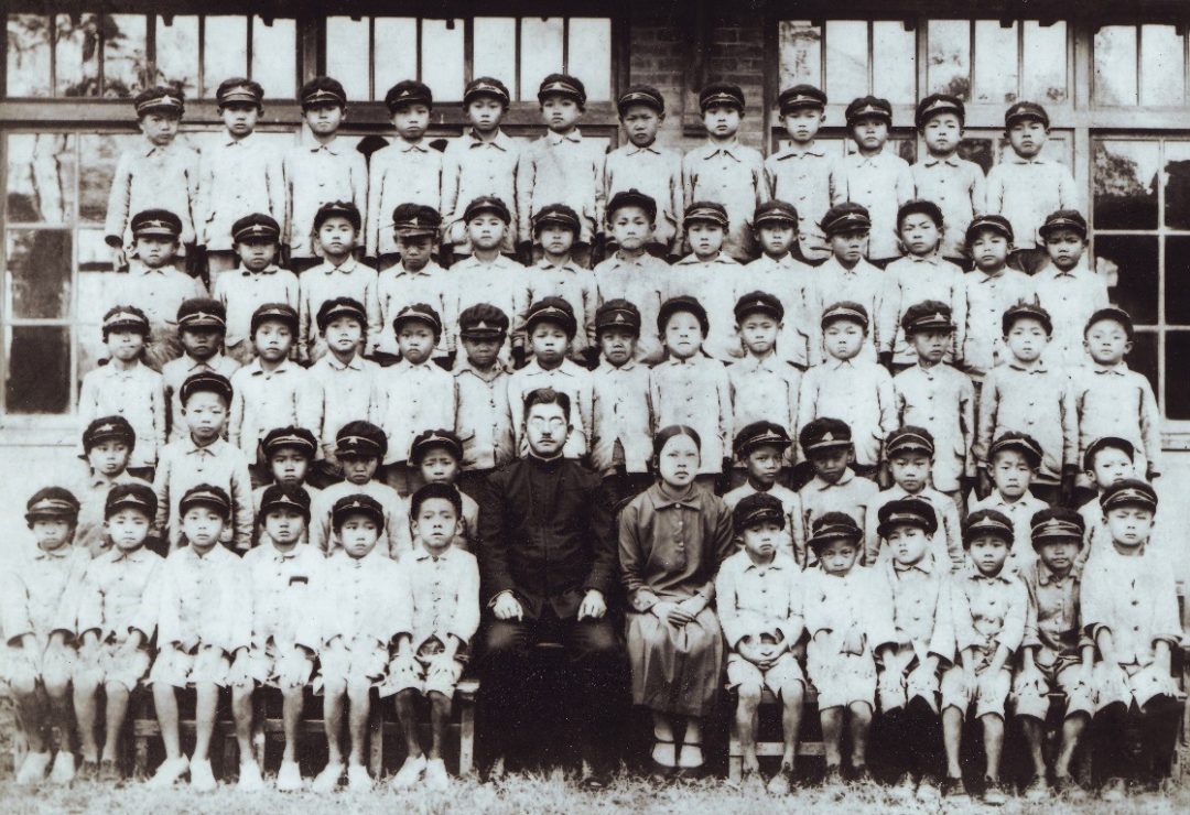 母親與校長、學生合照 (媽媽二年級一班學生有61人,約1935年) 嘉義,朴子