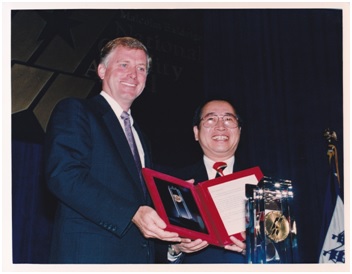 Representing Solectron, Winston Chen received the Malcolm Baldrige National Quality Award from Vice President Dan Quayle in October 1991
